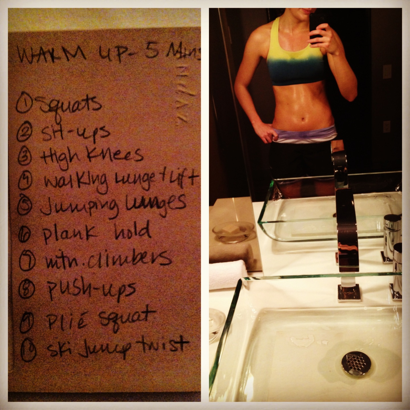 As I mentioned earlier, post dinner, I skipped out on another round of drinks in lieu of taking a bath… great decision on my end, because I was able to get up and do this very sweaty workout