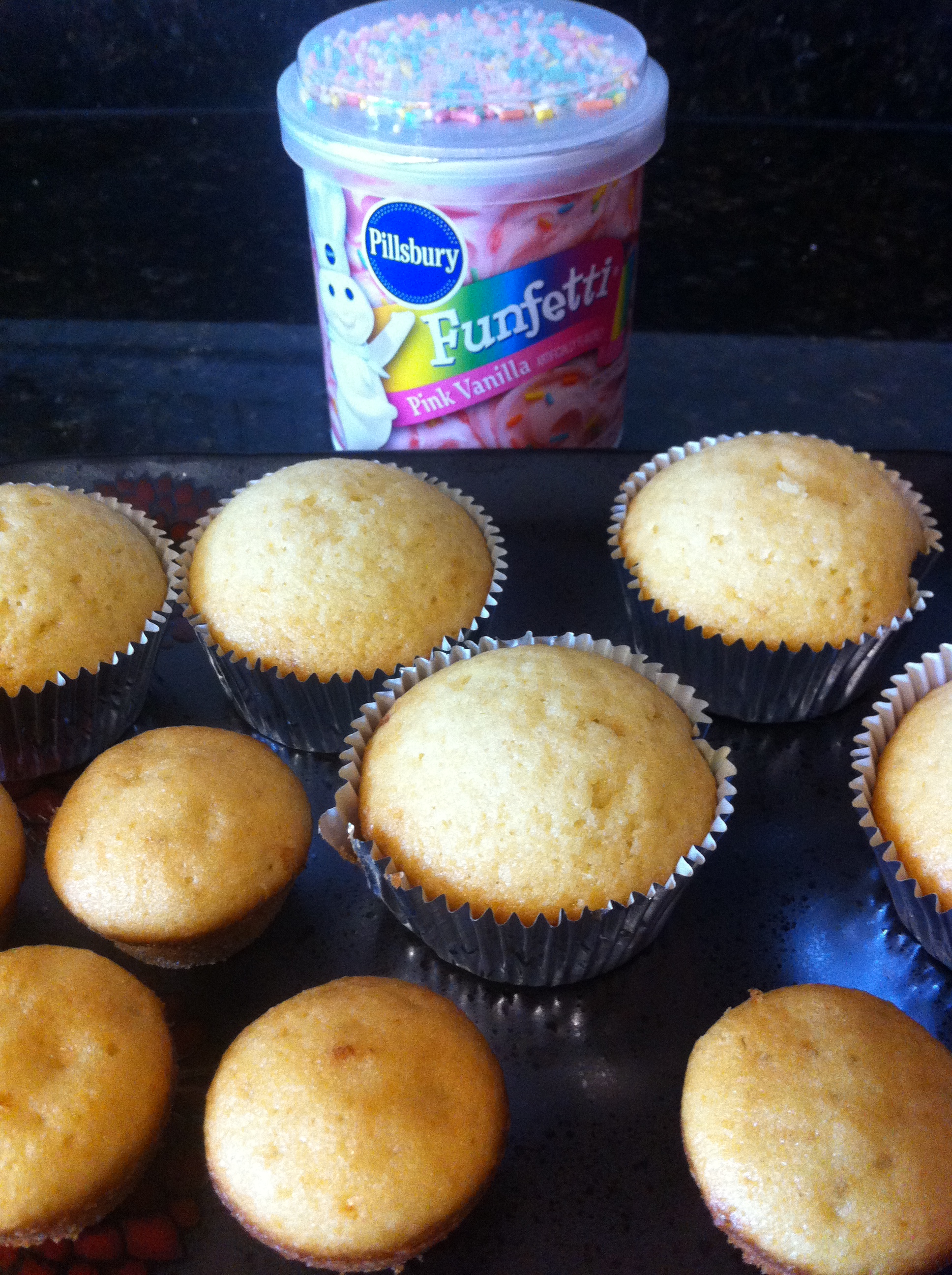 Since I had an open container of frosting (blogger confession: I LOVE LOVE LOVE frosting. Literally would- and have- eaten it by the spoonful), I decided today was the perfect time to make these cupcakes.