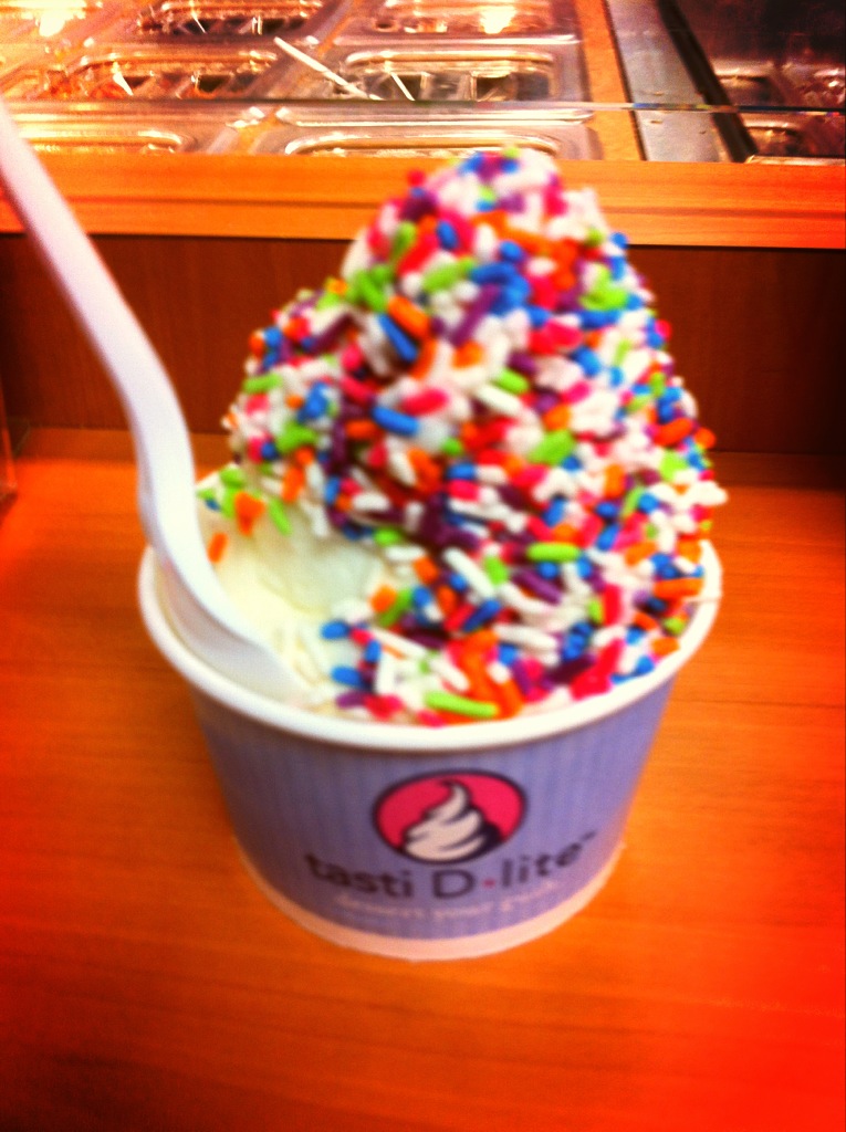 Cute, right?! And, I ended up finding a really cute of low-rise (unheard of at Lulu) capri’s on sale for $29!! With my instructor discount, that’s basically free when it comes to Lulu:) Since I “saved” so much money and had extra time on my meter and before class, I treated myself to some frozen yogurt.