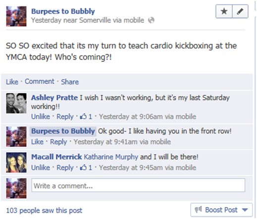 Class was awesome- I incorporated one of the moves that Jen’s posted in her most recent Monday Moves post and everyone loved it! I’ll post the workout later this week- promise!