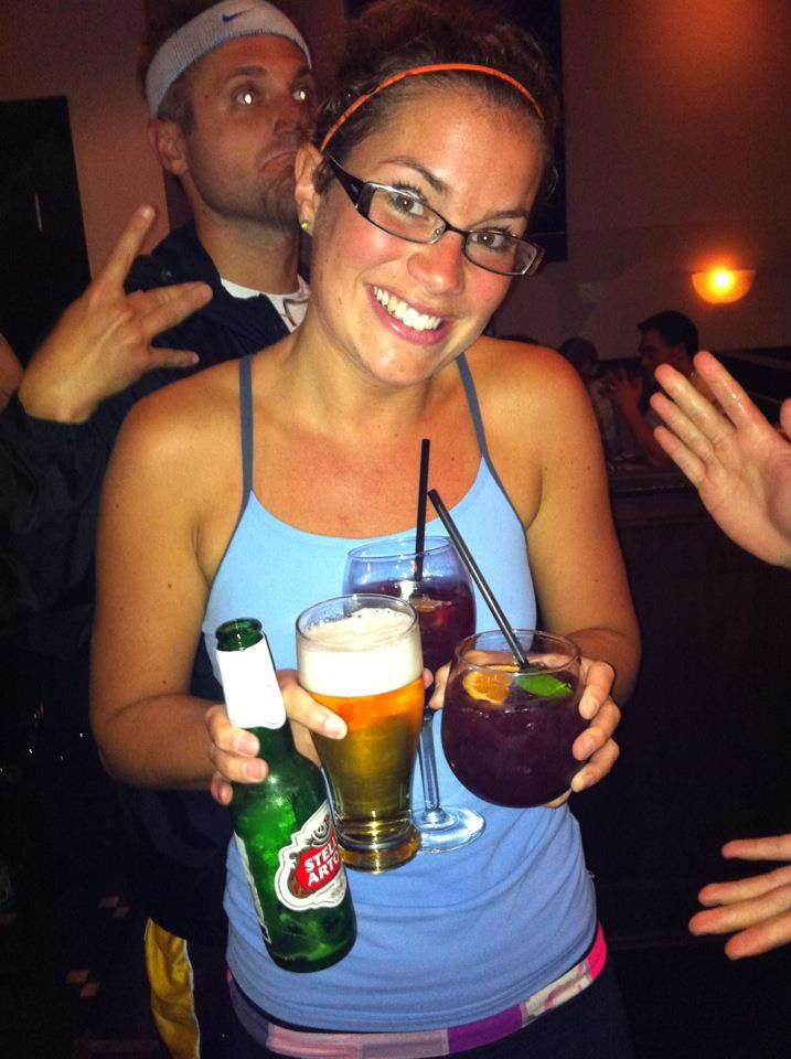 It may be tempting to drink fruity fun cocktails and margarita’s, but they are loaded with calories- in my mind, it’s stupid to drink those types of calories in excess, so have one and then switch to something lighter like wine or vodka and club soda. Also, it may be easier to drink beer, but if you’re drinking multiple, multiple beers, they will make you feel super bloated and they’ll rack up the calories! I also try to drink water between each drink- I know that can be hard to keep up, but if you hydrate really well during the day and try to drink water throughout the night, you’re chances of a headache hangover are severely lessened.