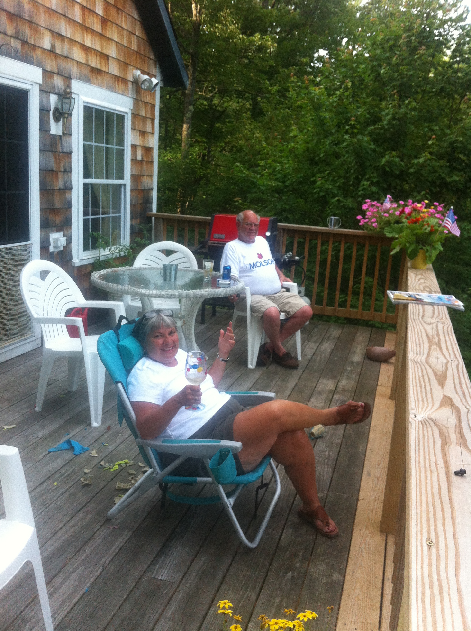 He’s just too sweet for words! Once everyone had had enough of the lake, boating and tubing, we headed back to shore. My parents were already at Chris’s “pre-gaming” for the BBQ. Ok, they weren’t pre-gaming, but they were enjoying cocktails on the deck waiting for all of us to arrive.