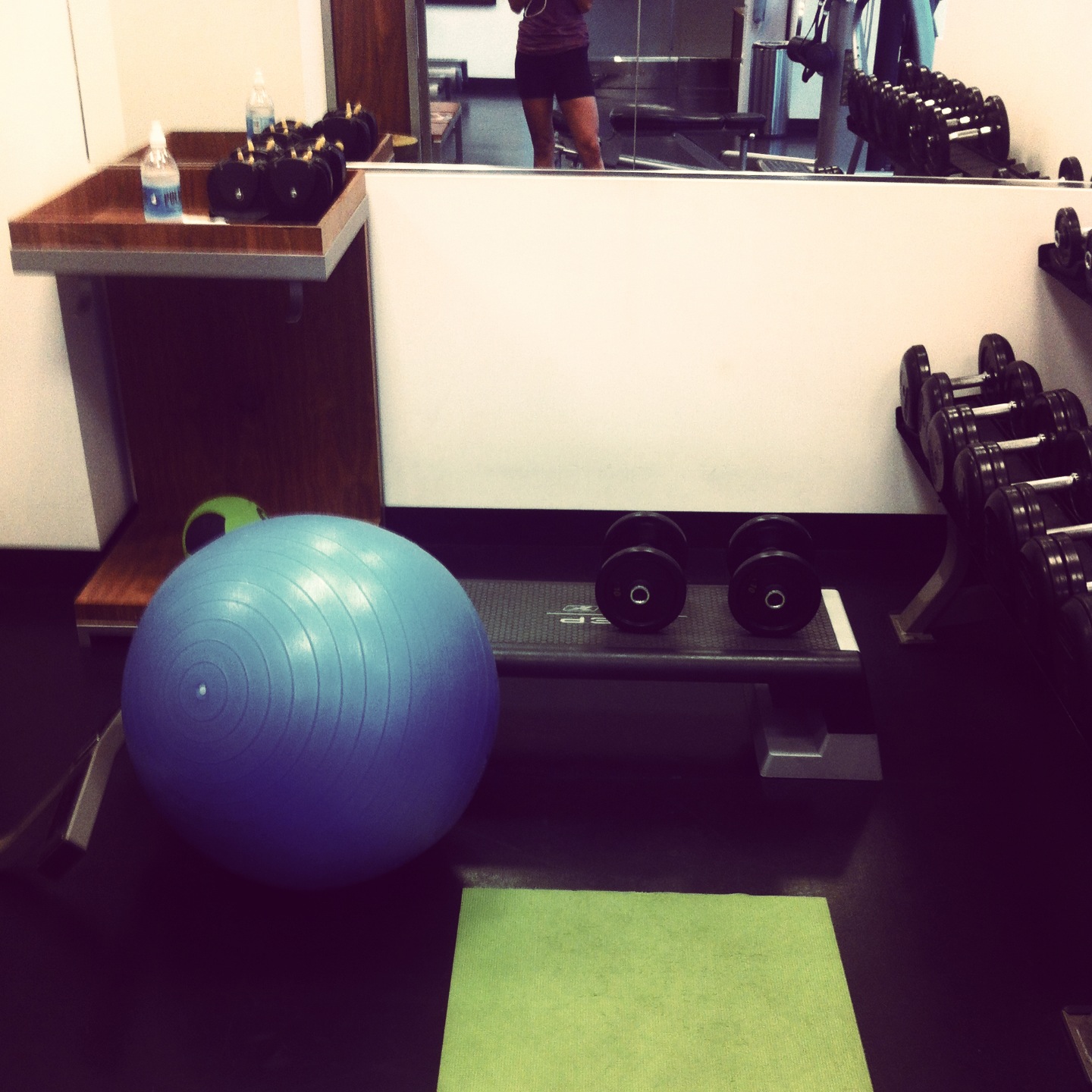 - Tuesday- I got up at the hotel in Atlanta and did 30 minutes on the elliptical, followed by 4 rounds of: 10 box jumps, 10 incline push ups, 10 squat and press and 10 stability ball leg lifts. Felt great!