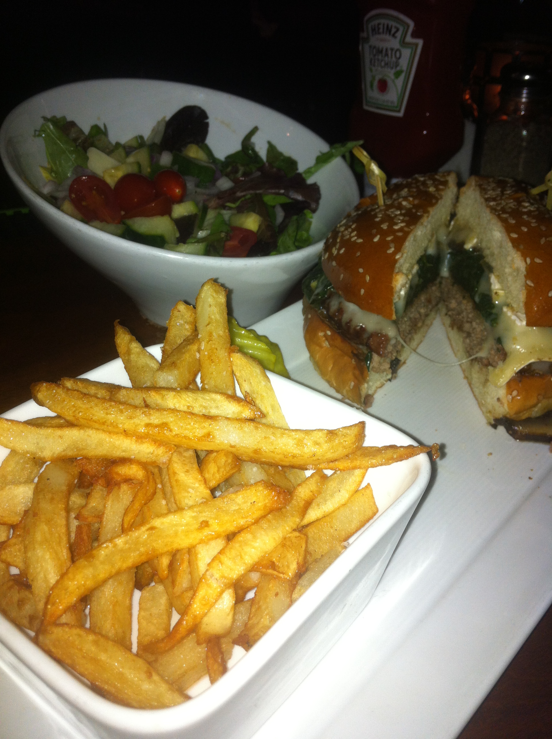 - Tuesday- again, healthy breakfast, but lunch was French onion soup and half a BBQ chicken wrap… oh, and sweet potato tater tots. See the reoccurring theme? Dinner was at the airport… a nice, big salad… and another quesadilla.