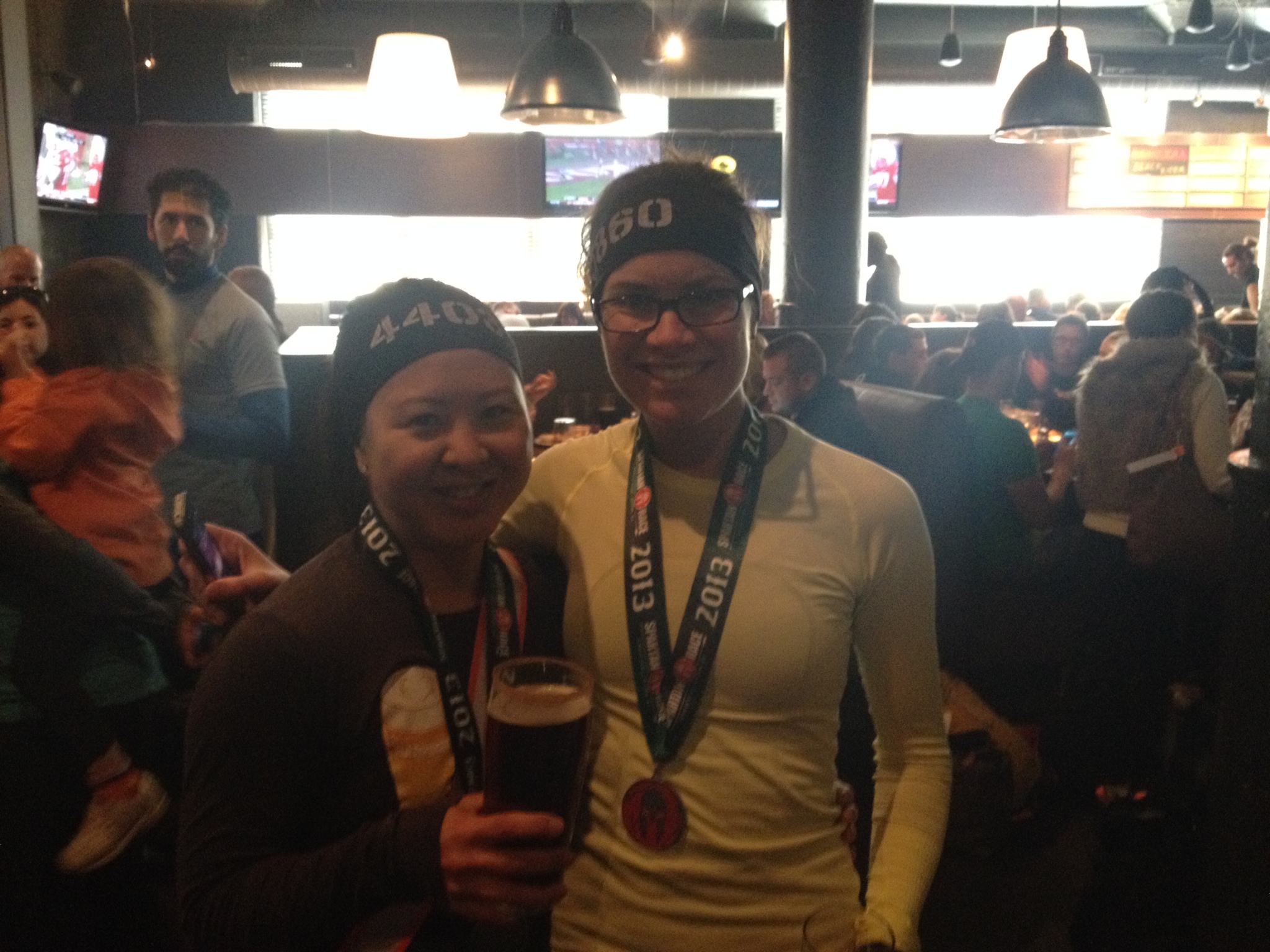 After we got our stuff and changed, we headed to Boston Beer Works for beers and food. I was ravenous after the race!
