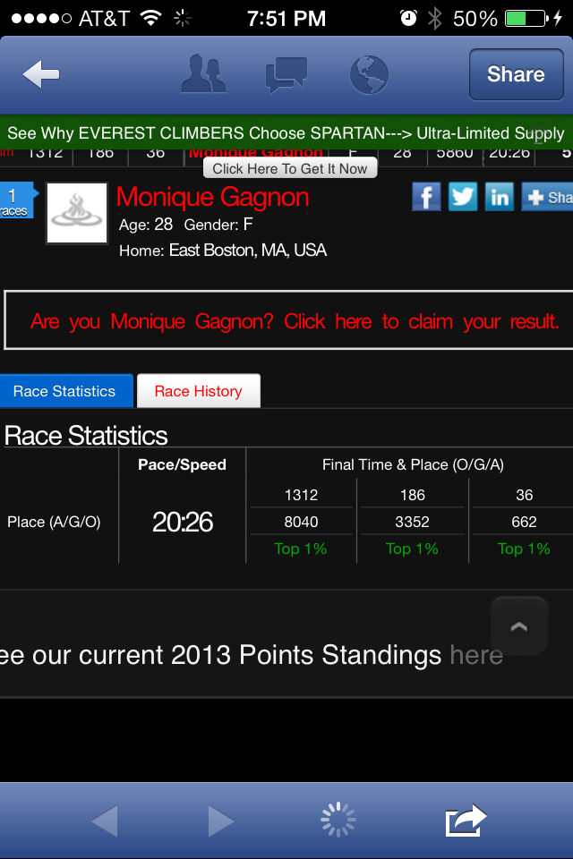I finished the race in 51:06, and could’ve finished in probably 46-48 had I not had to wait at some of the challenge stations and at the last wall climb. To say I was shocked and ecstatic about this would be an understatement!