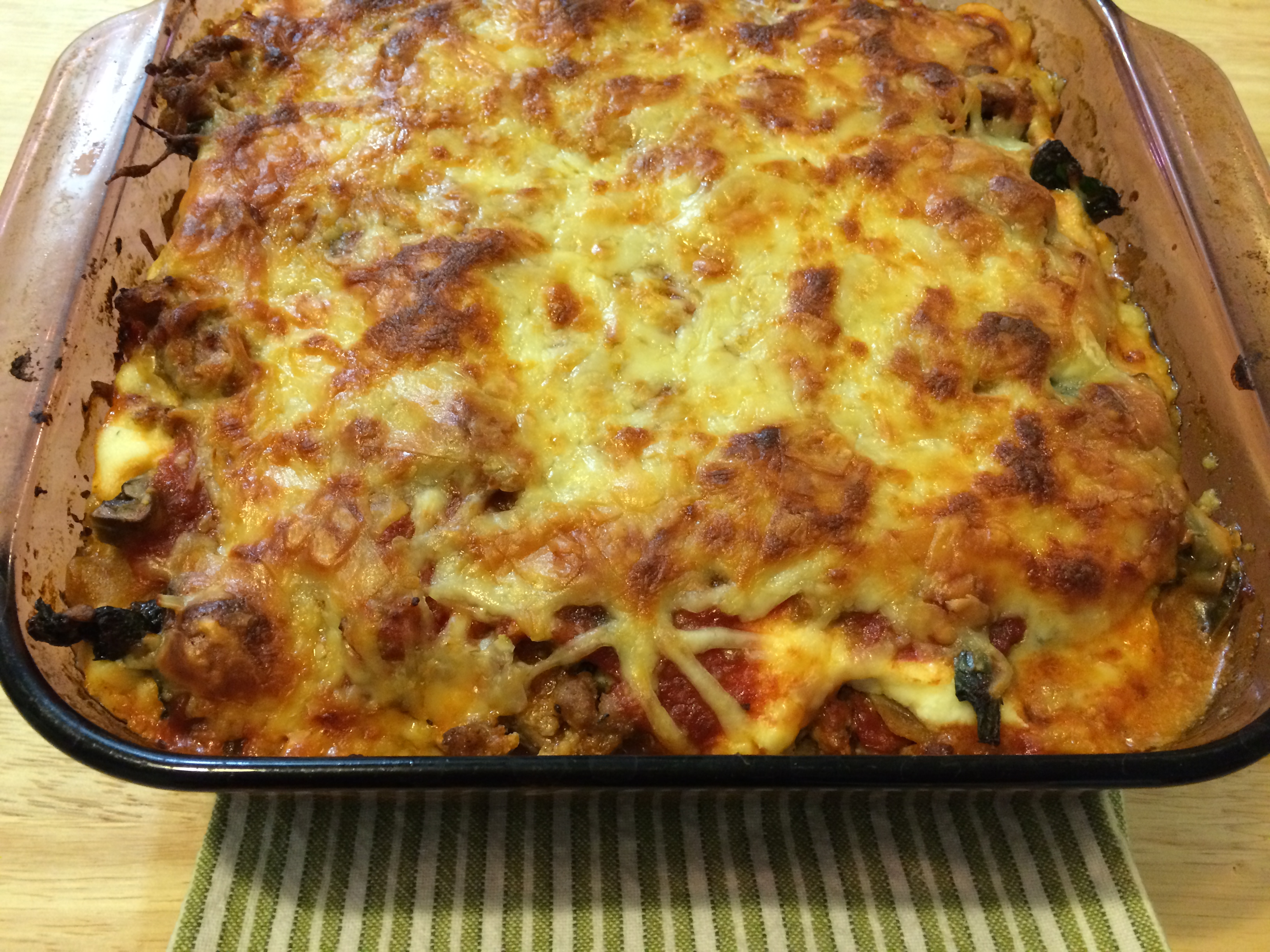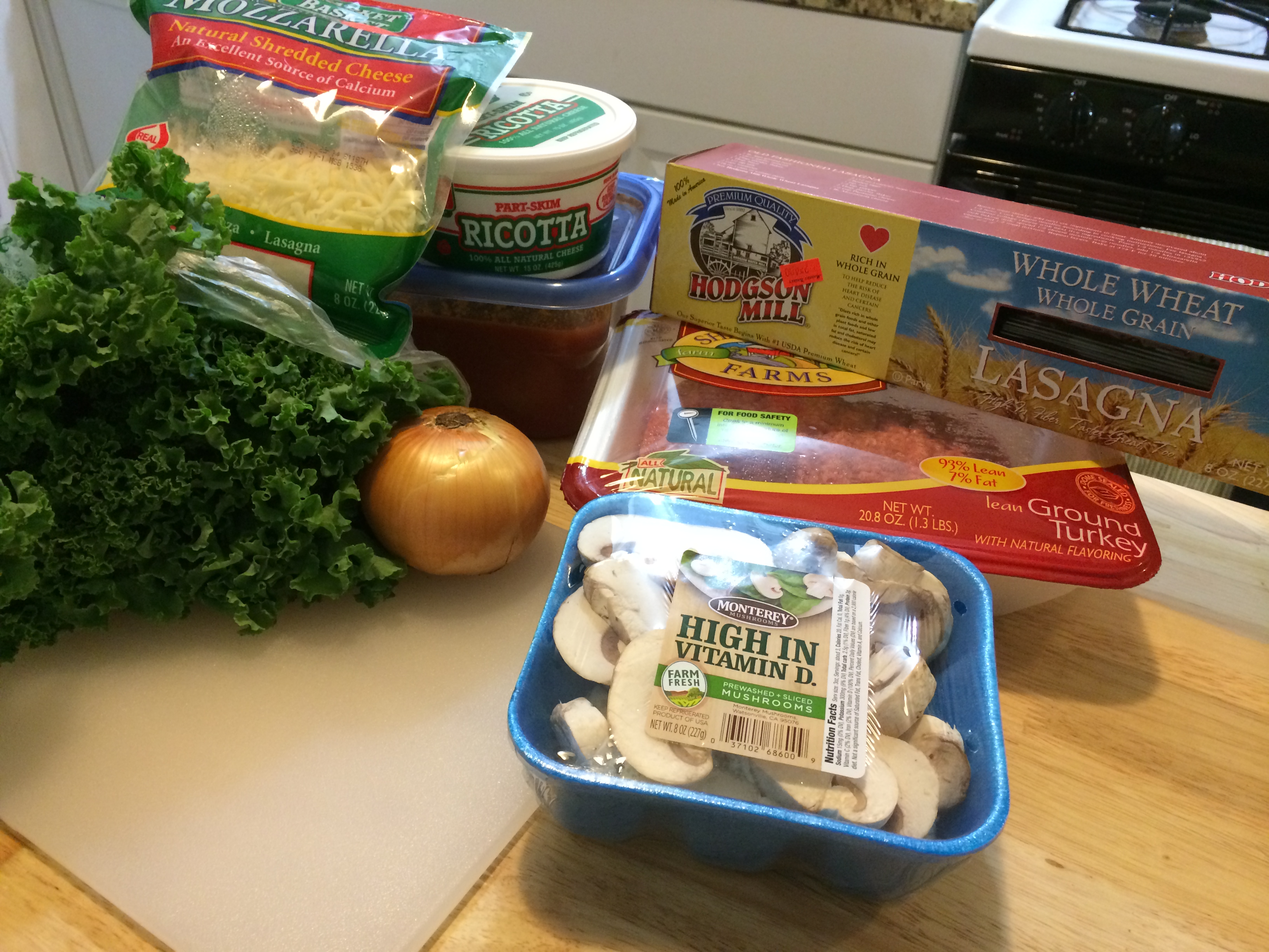 Caramelized Onions, Mushrooms, Kale & Ground Turkey Lasagna