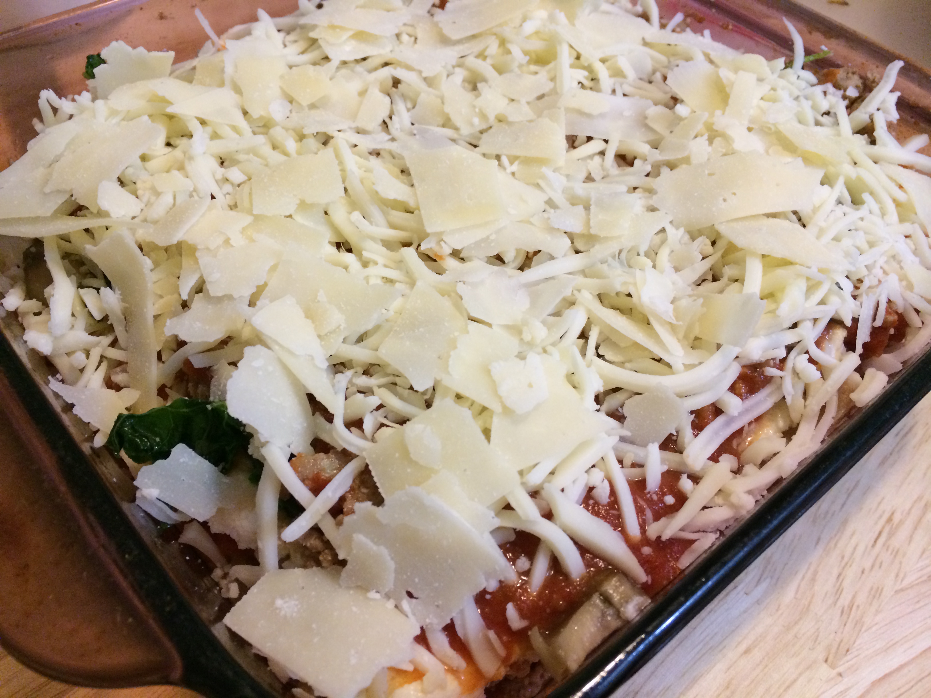 But, last weekend I got a craving for lasagna. My dad had given me a big container of his homemade sauce and I had been keeping it in the freezer for a time when I knew I’d use it all up. Lasagna was the perfect dish to do that!