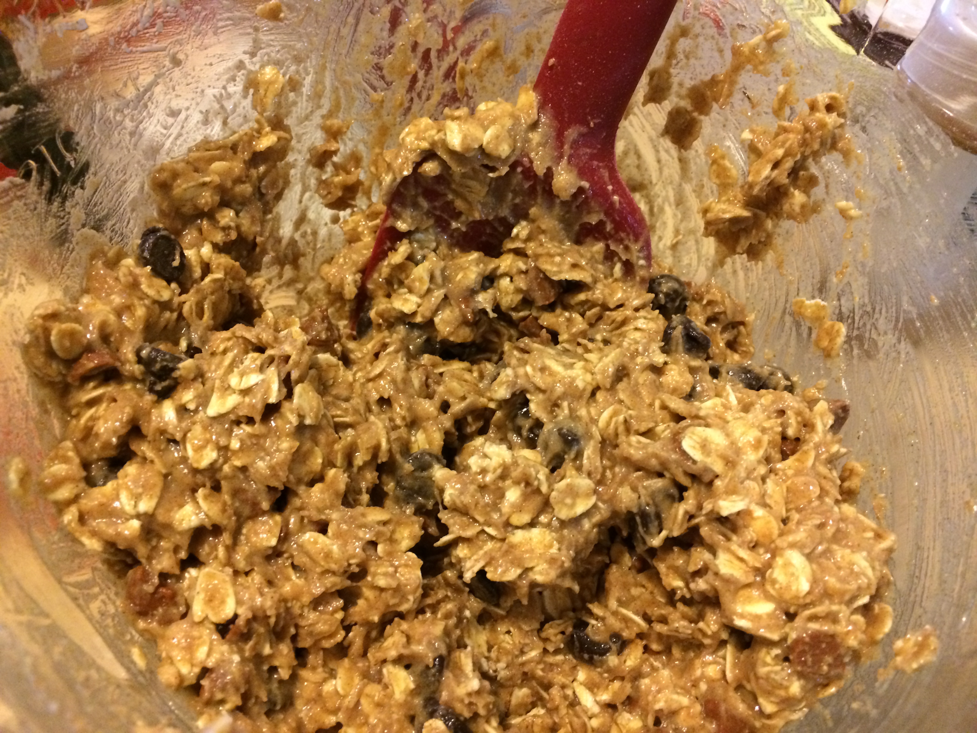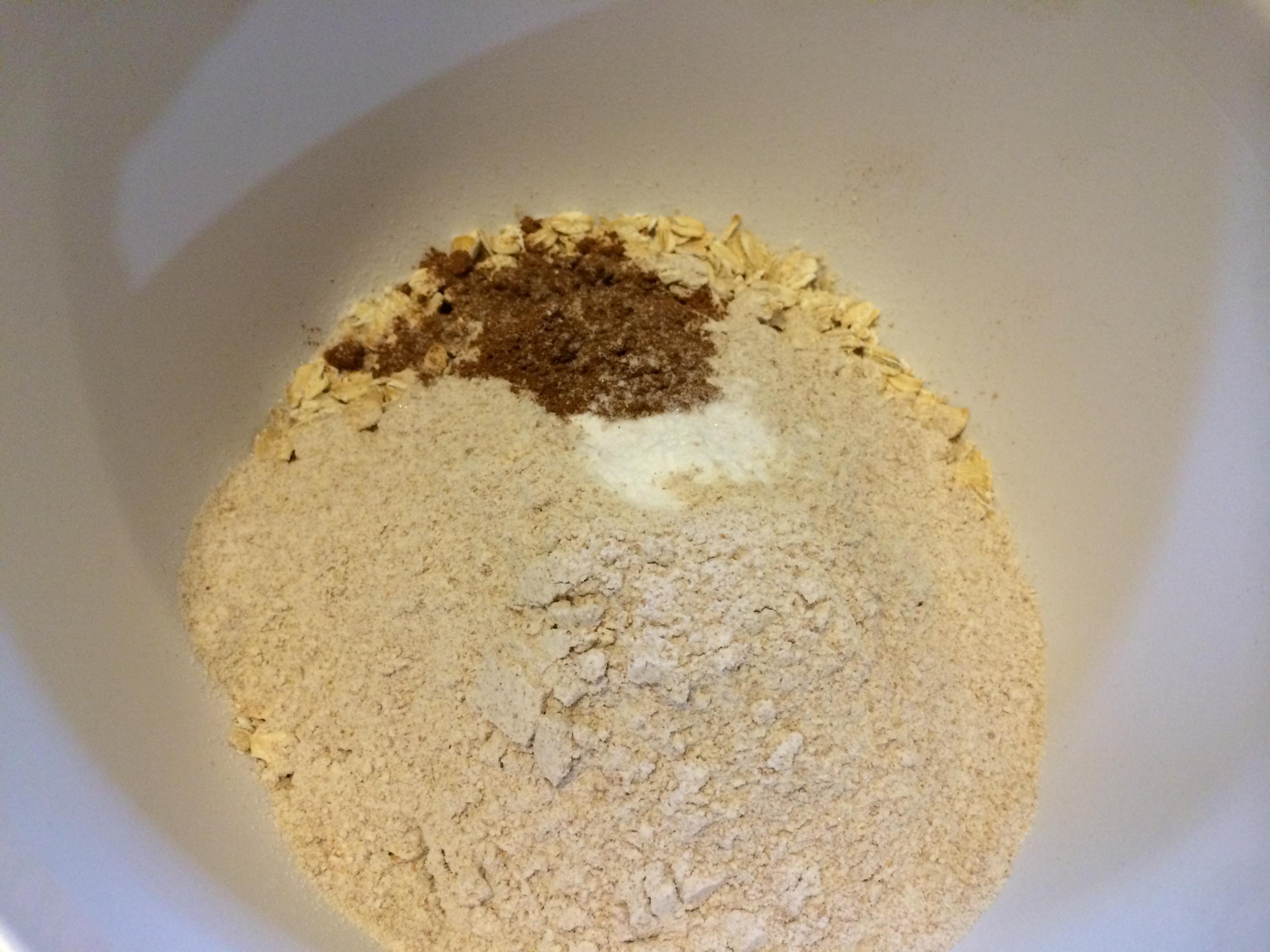 1. Preheat oven to 375*.Combine the dry ingredients (oats through the sea salt) in one bowl.