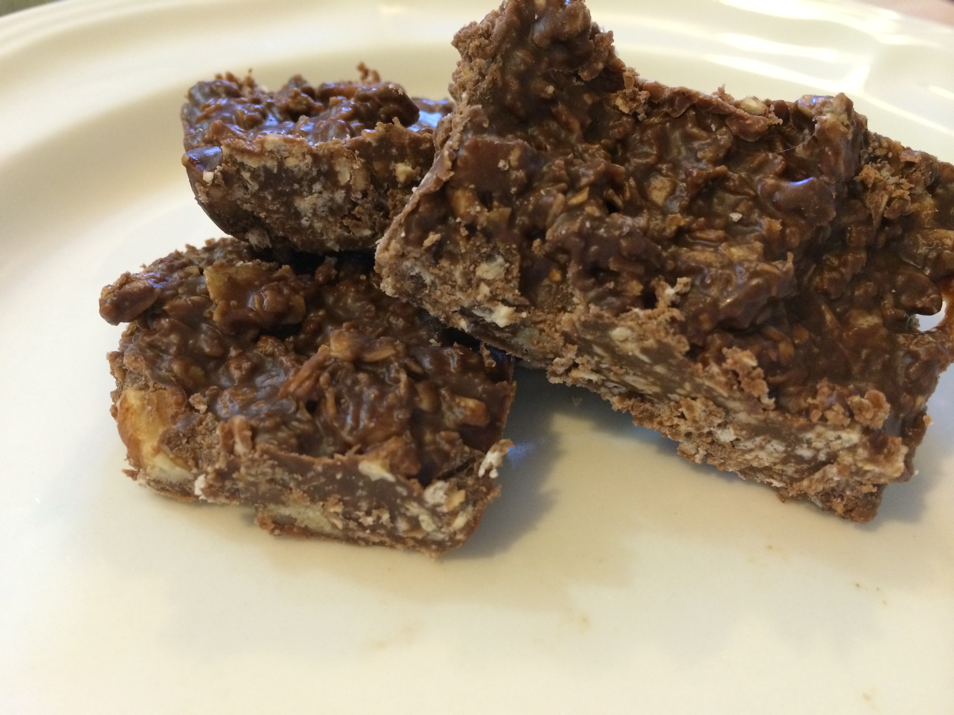 When I got home, I whipped up a batch of the most delicious gluten free, dairy free oatmeal chocolate coconut pecan no-bake bars!