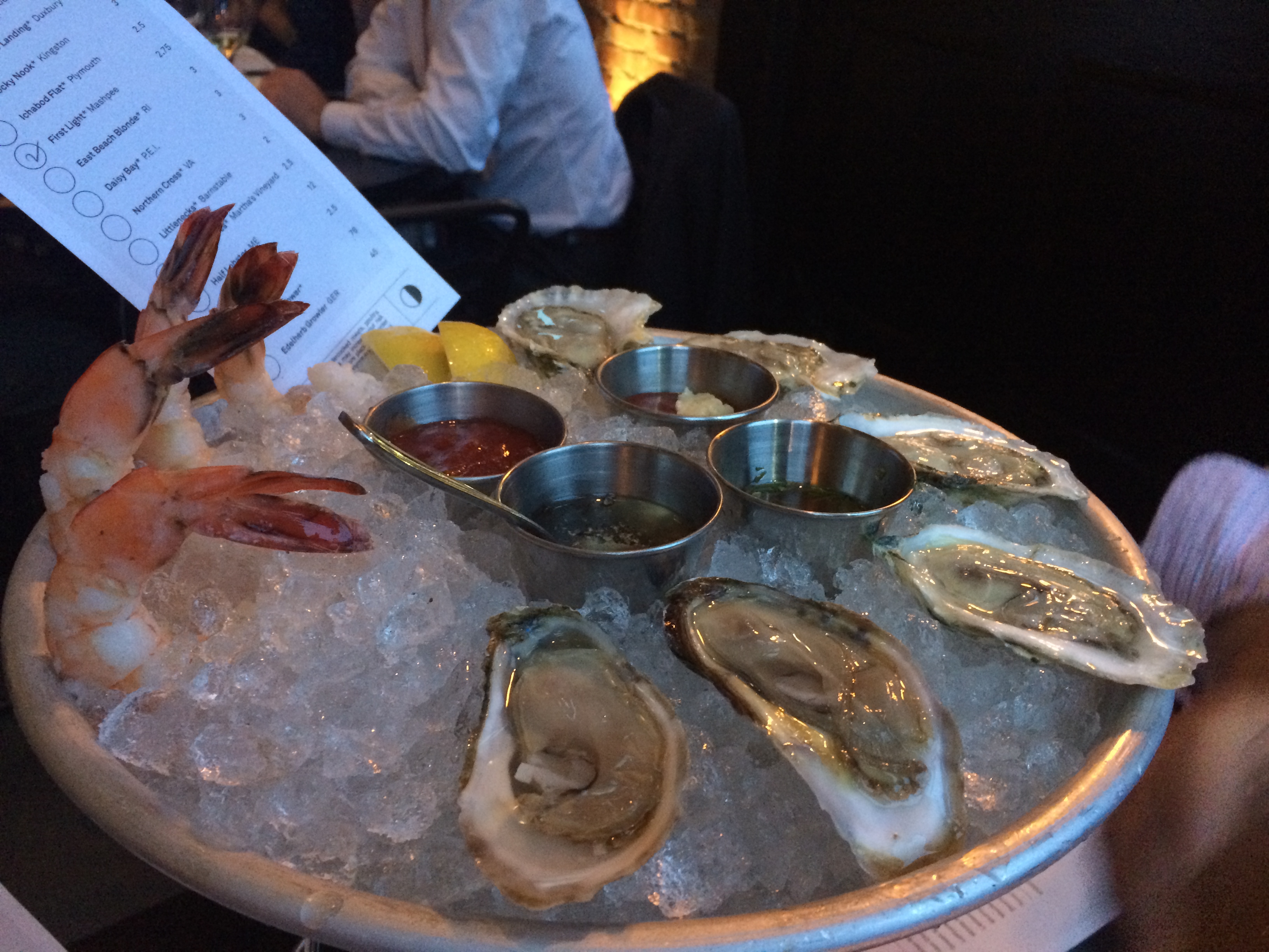 We had dinner reservations at Row 34, which I’ve been dying to try. It was a good thing he tried making reservations a week and a half in advance because they were already booked solid (on a Monday!). I called and pulled some birthday strings, though, and got us in. Everything from the atmosphere to the service to the food was outstanding and we thoroughly enjoyed every piece of the experience. I even tried oysters- and liked them! I had the Bucatini and it was SO good. I think he had the bluefish, but I can’t remember… I blame it on the Cosmo’s 😉