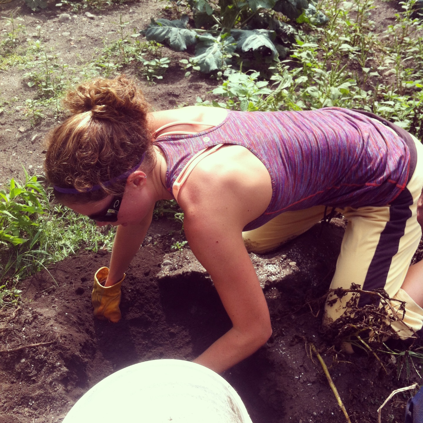 Last weekend, my dad came down and we gardened together and let me tell you, it’s not easy! Between lifting and carrying heavy bags of soil, raking, shoveling, etc., I felt like I had a full body workout! Pulling potatoes is also a tough job. A way to get more exercise in? Rather than using a hose, use a watering bucket which requires more trips back to the faucet, which means more walking, which means more calories burned 🙂
