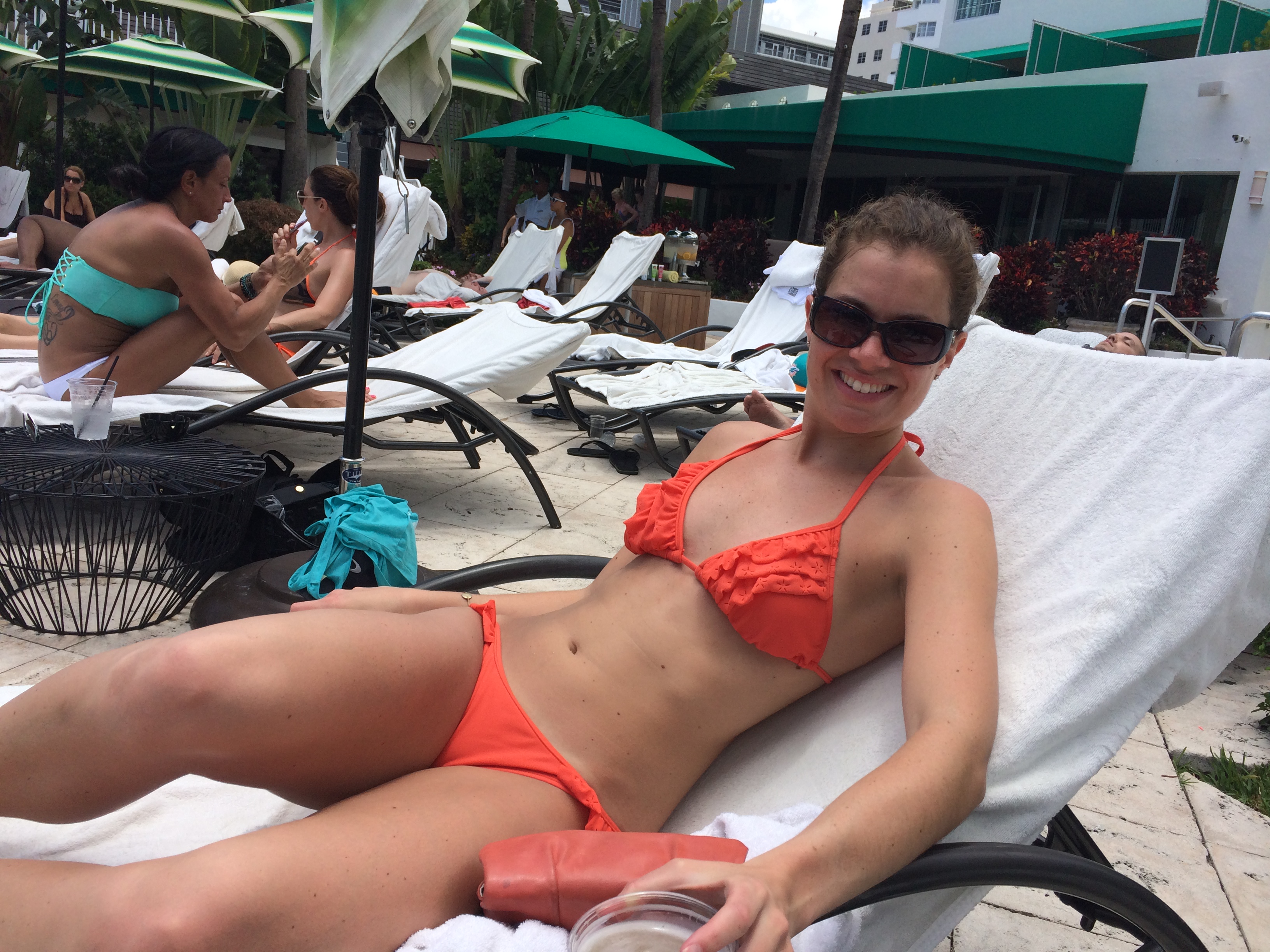 Rather than give you a play by play of the weekend, I’m going to let the pictures do most of the talking. We spent a lot of time at the hotel’s pool and outdoor bar, but we did venture to the ocean once (and when I say “venture”, I mean walk out of the hotel’s property and onto the sand… it was so close!), which was a nice treat since it felt like bath water and I am used to frigid Maine ocean temps. We didn’t do any excursions and ended up staying close to the hotel since it was such a nice place to be and the food was delicious. We did go for a nice, long walk one afternoon to look at the hotels in the Art Deco area (which is where we stayed), but other than that we just wanted to relax. Not having a plan to get up and go elsewhere was a really nice feeling 🙂