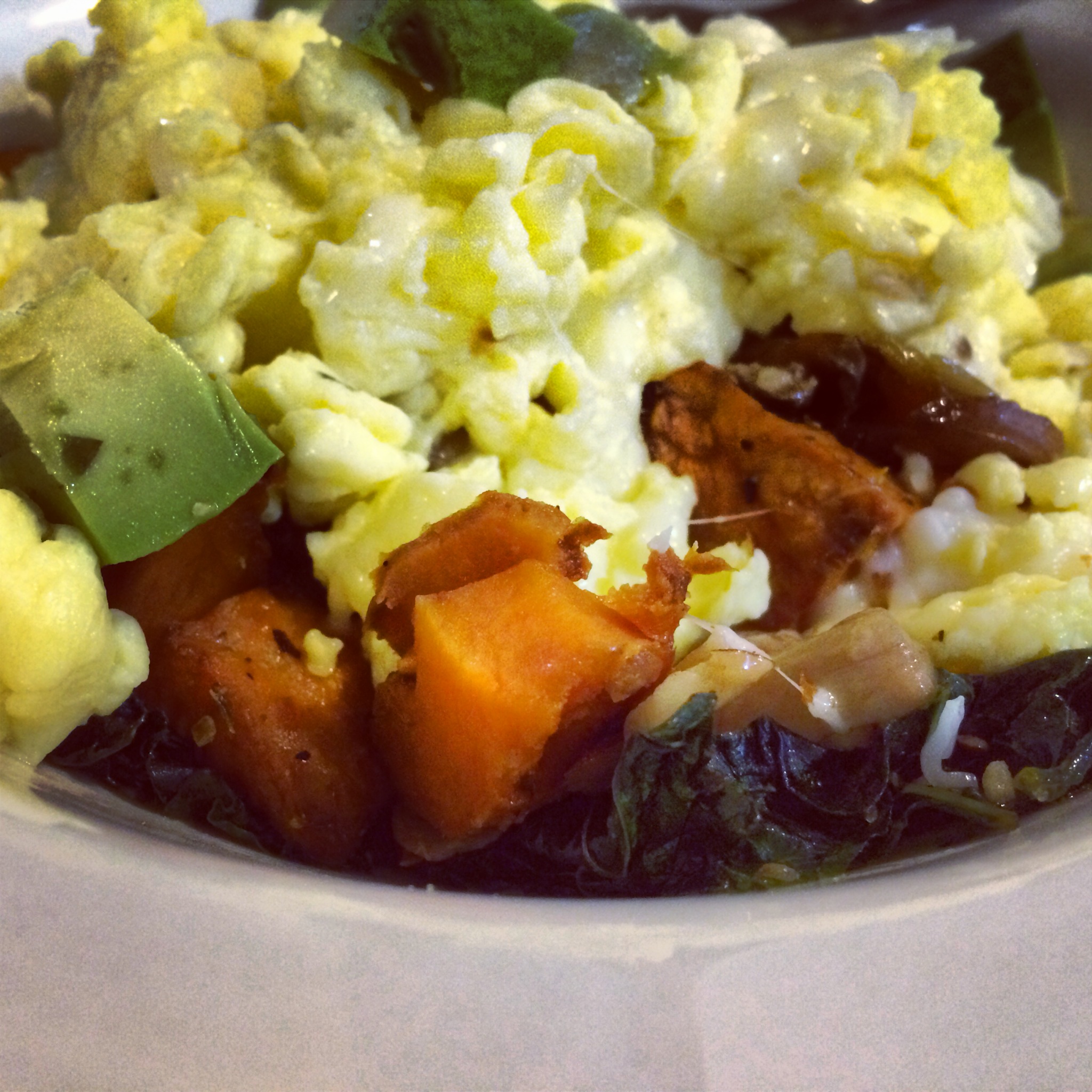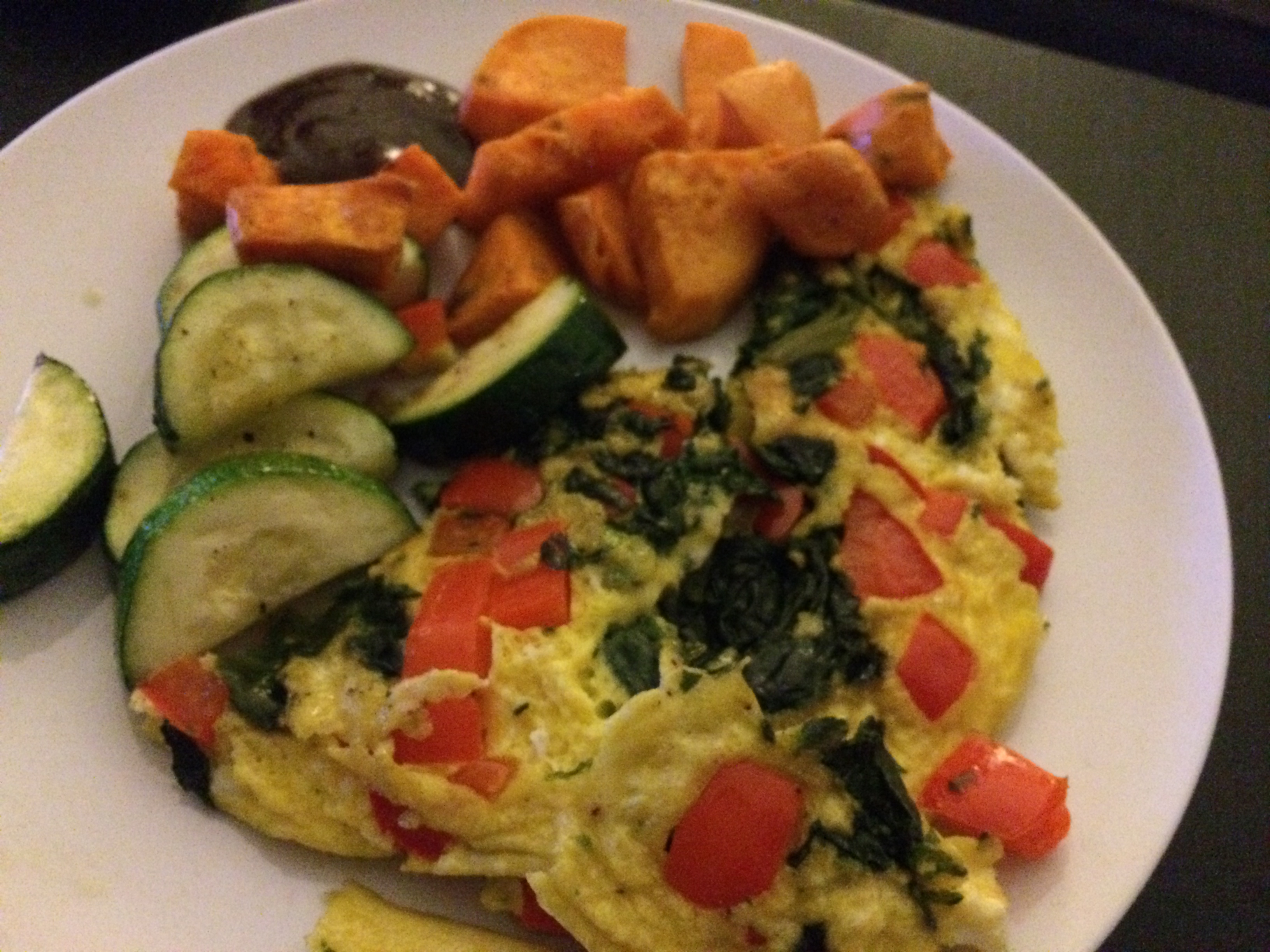 I usually do them scrambled, but sometimes I do hard boiled or over easy… Heck, sometimes I even microwave them for the fastest and easiest type of egg! I try to incorporate some type of veggies or greens (spinach or kale) to add in a little exta nutritious value. I usually top my eggs with slices of avocado and salsa- makes for a super tasty meal! RM will often make us frittata which is a fun way to change up my normal egg consumption.