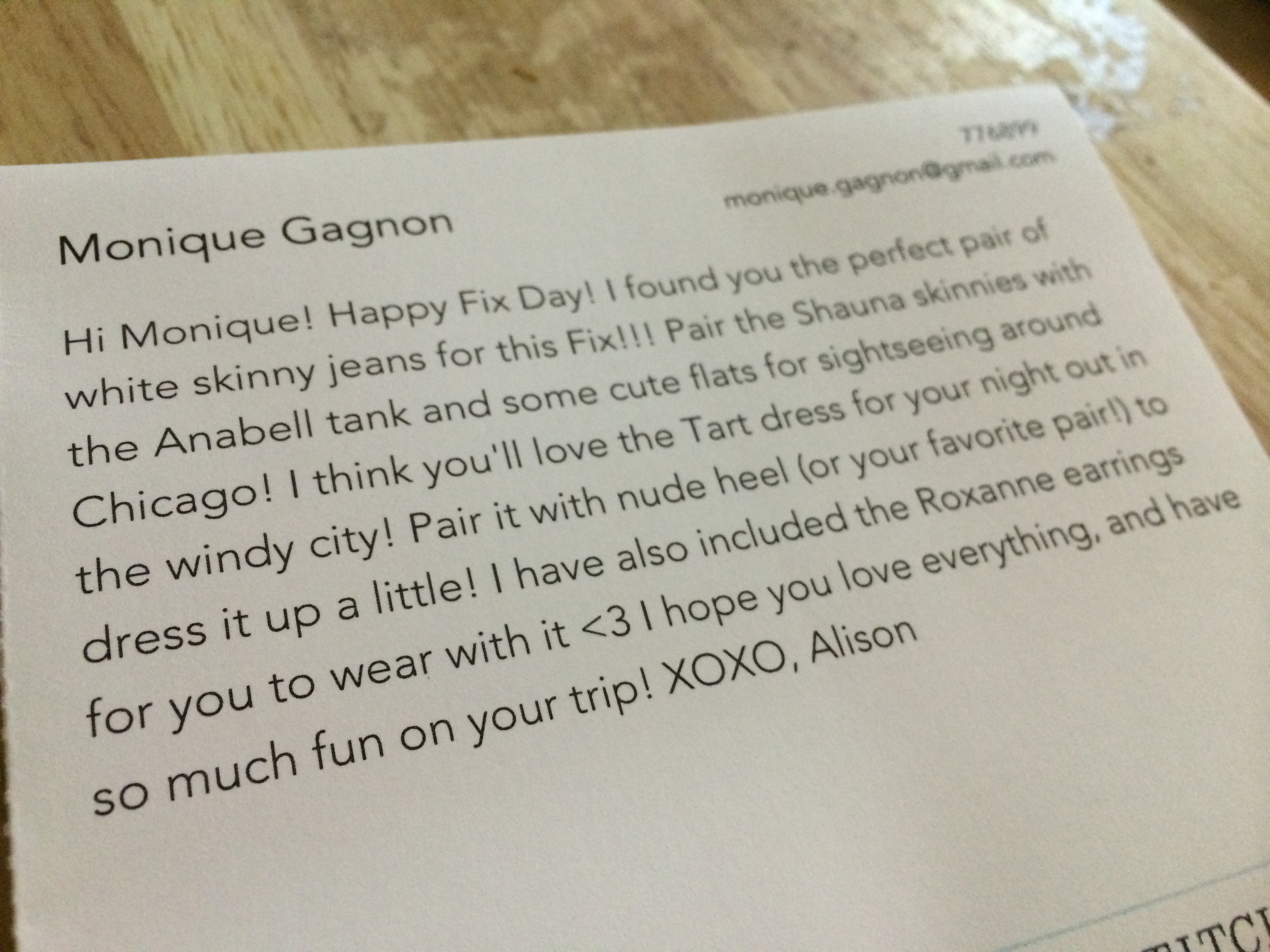 On top of that, the personalized note from my stylist, Alison, was SO sweet and, well, personal.