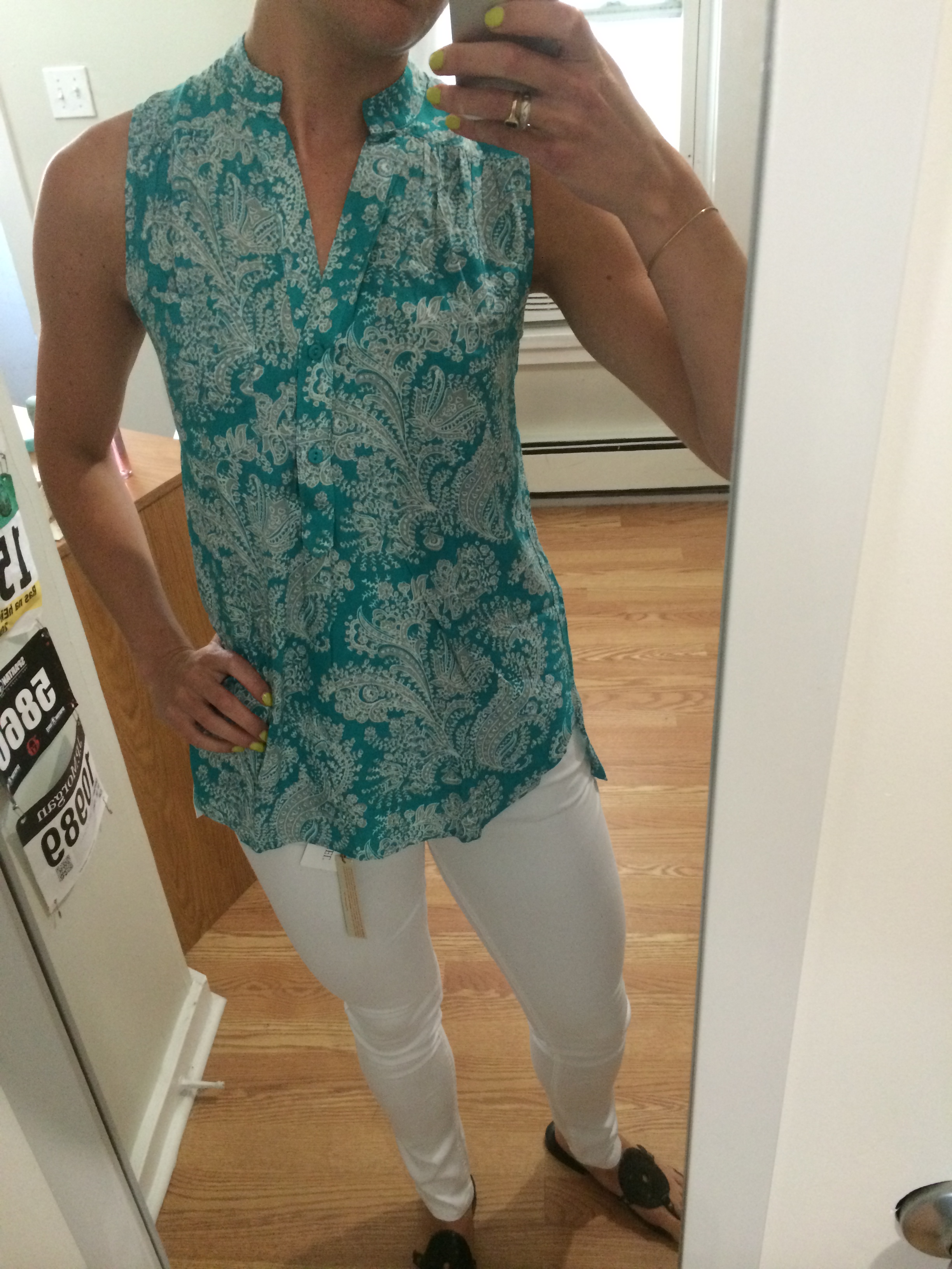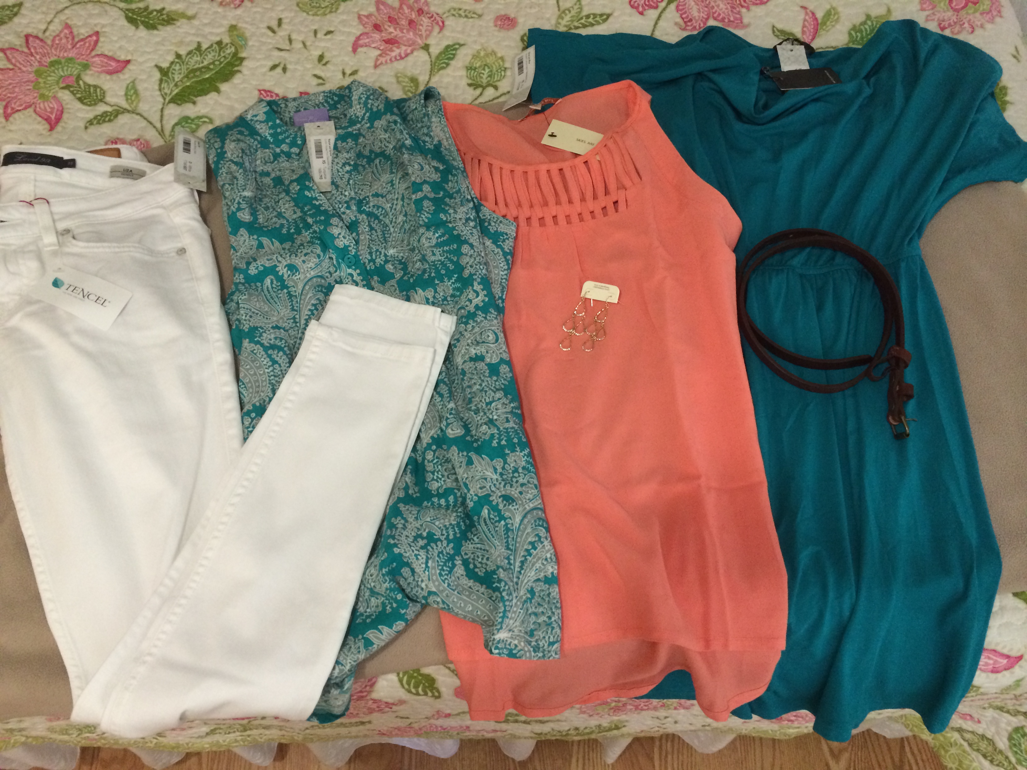 I just couldn’t wait to try them on… especially the white skinnies, which, as Allison said, were the PERFECT skinnies. Here’s a recap of my items: