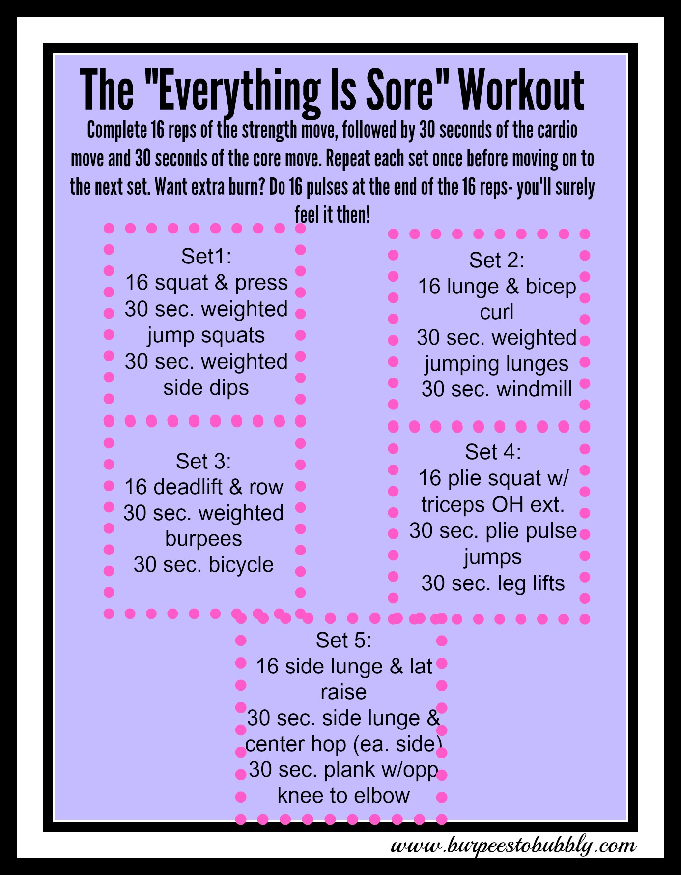 Questions for you: Do you like interval training or do you prefer to do cardio then strength then core? When’s the last time a workout left every part of your body sore?