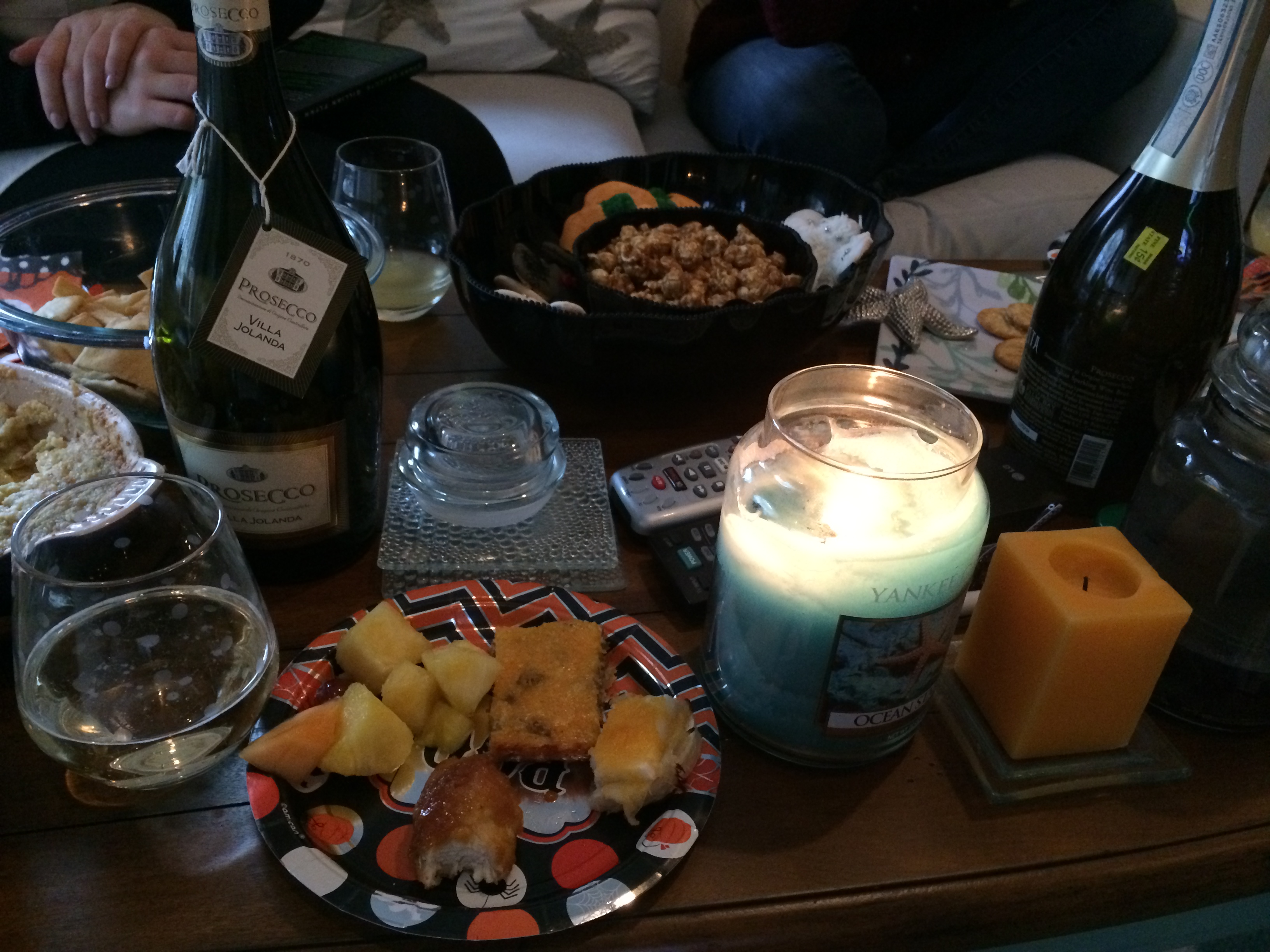 to book club with my girlfriends, delicious food and lots of bubbly on a snowy Sunday afternoon