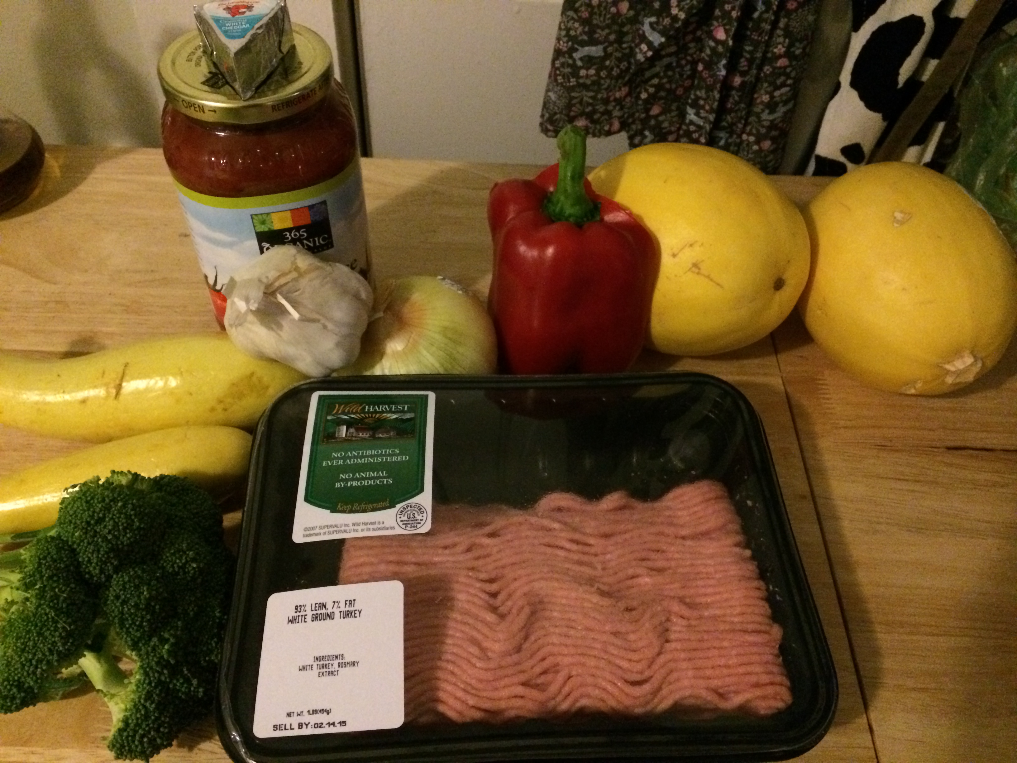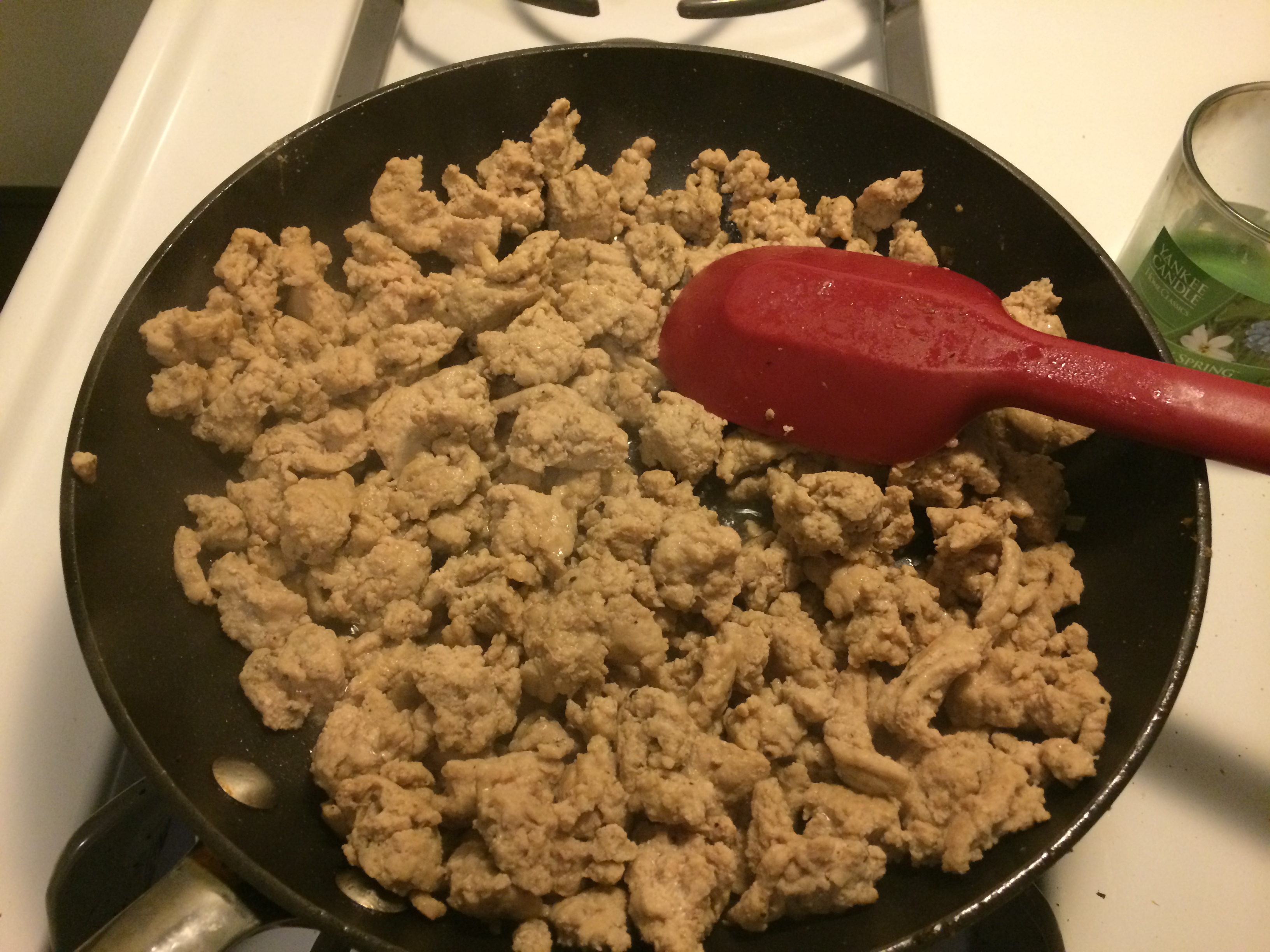 - Ground turkey (for the dish, I used about 3/4 of a pound, I think)