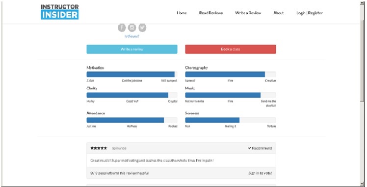 As far as what the site offers right now, there are a number of different categories to rate your instructor on such as Motivation, Choreography, Clarity, Music, Attendance and Soreness. There’s also a place to write out some thoughts/comments/feedback in case the categories don’t touch on everything you want to talk about.