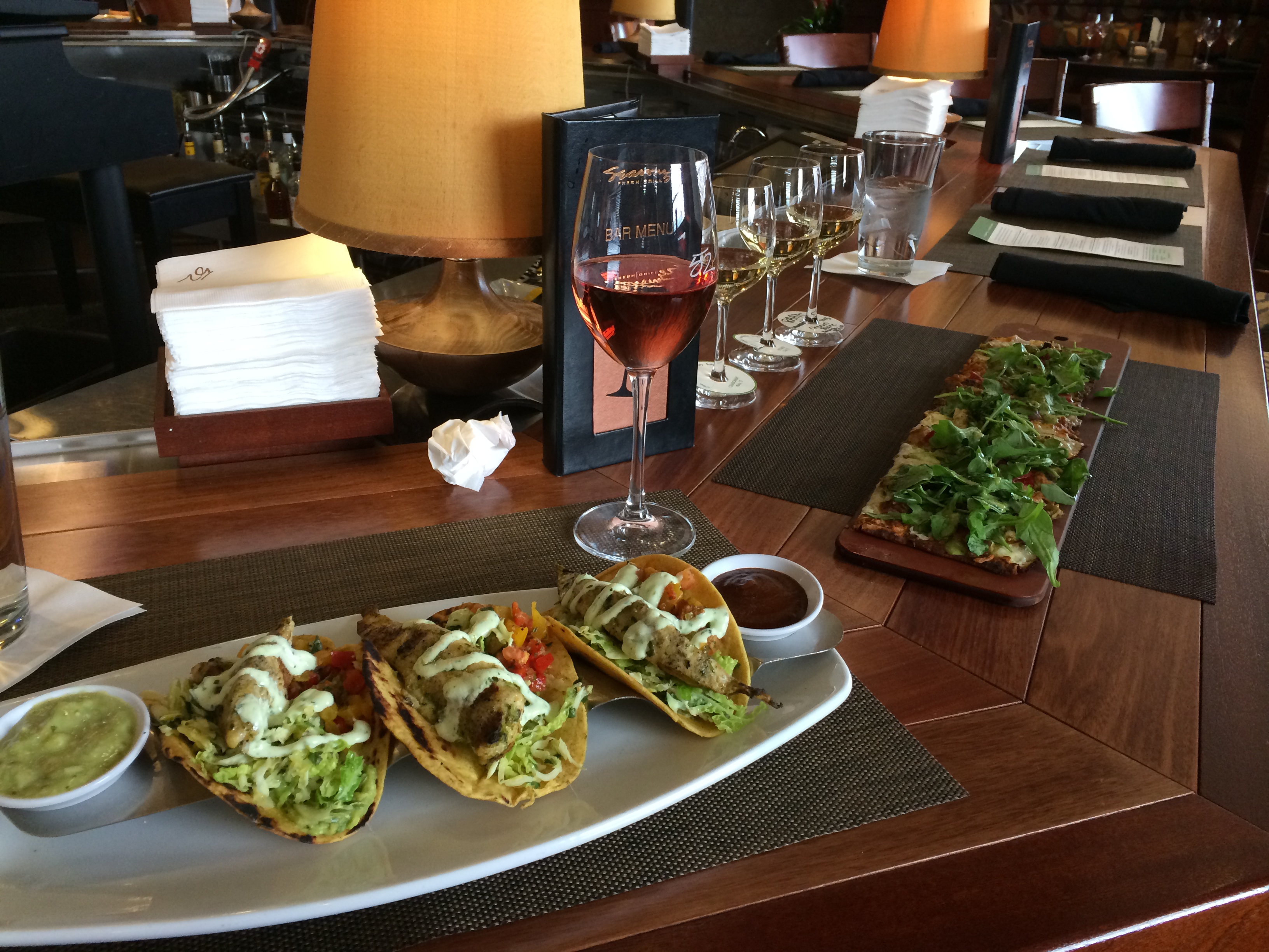After our workout, we walked over to Seasons 52 for lunch. Have you guys ever been there or heard of it? I’m not one for big box chain restaurants, but since this one was so close and since I had heard such great things about it, we decided to check it out. I’m so glad we did because it was awesome! Everything was so light and fresh. We talked to the waitress and although everything on the menu is currently under 475 calories, they are shifting towards removing the calorie count since they are starting to incorporate more super foods that generally have higher calorie counts. Think: avocados, nuts, etc. I think this is awesome because it’s true- just basing your meal on calories isn’t going to be the healthiest option (but that’s another post for another time!). Anyway- I got the fish tacos (surprise, surprise) and a glass of rose and my sister got a flatbread which came with a wine flight AND a glass of wine for $15- amazing deal.