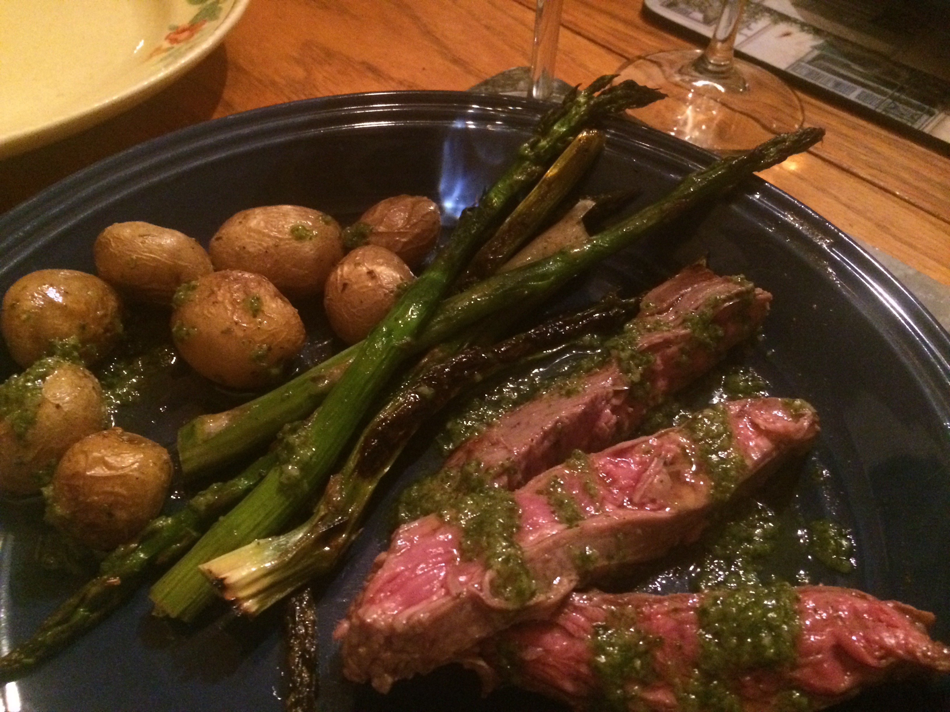 RM’s friend Brad cooked up an incredibly delicious meal when we were up at Sugarbush. Steak and potatoes and asparagus with this super tasty salsa verde. Must. Re-create.