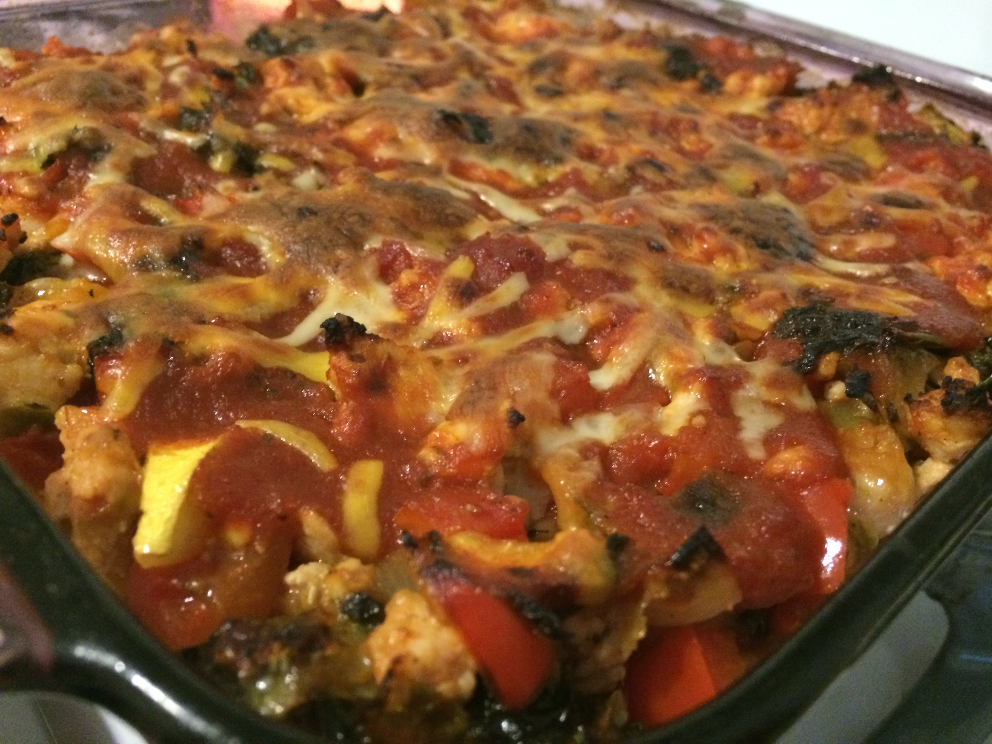 Last week I made the most random dish, but it ended up being pretty good! I just combined broccoli, red pepper, zucchini, summer squash, diced tomatoes, kale and ground turkey topped with a little cheese. I served it with quinoa and it was a perfect lunch for the week!