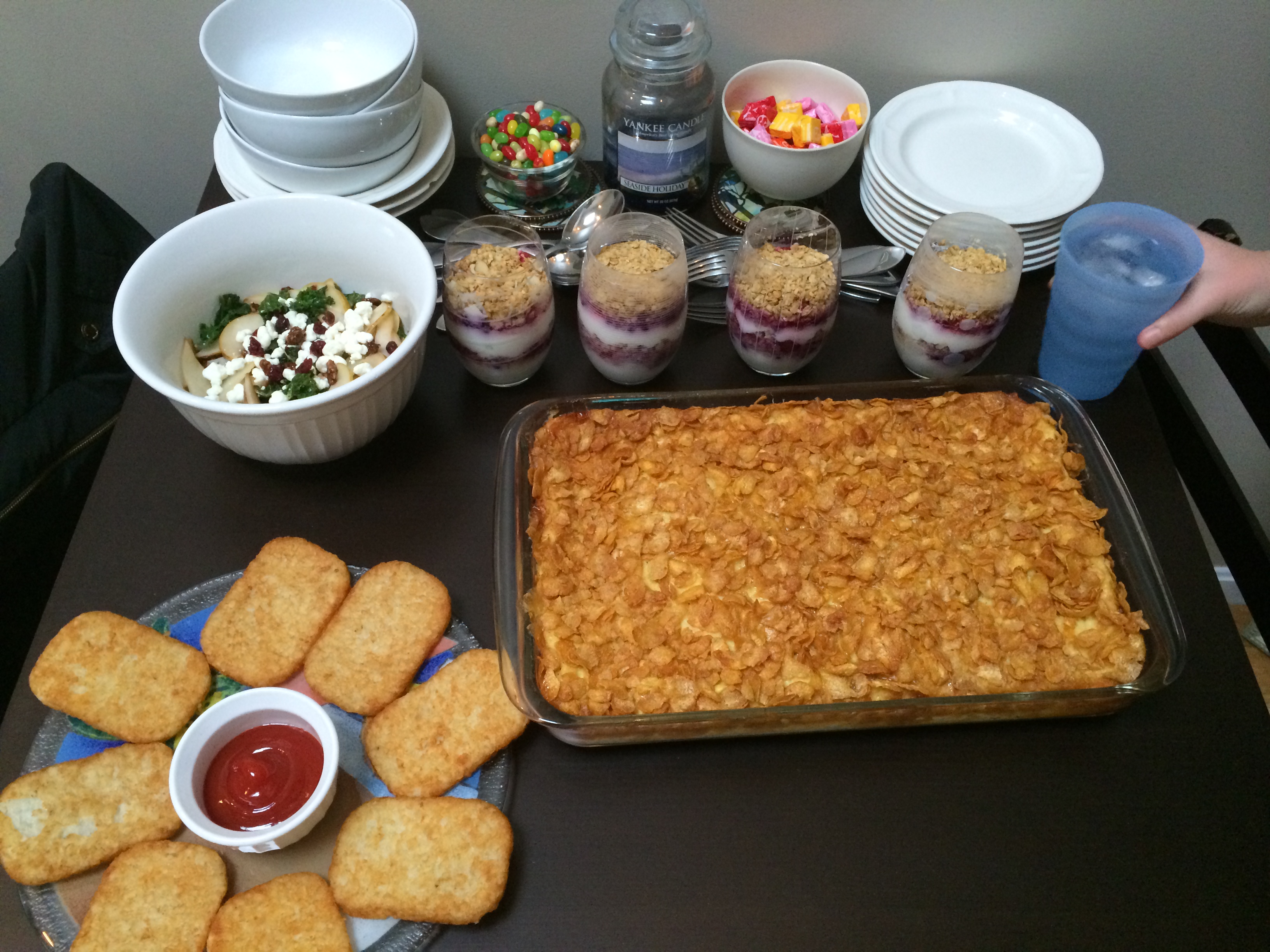 We had book club on Sunday (we read The Girl on the Train- have you read it?? It was crazy, crazy good!!) and Jessi hosed and made an egg casserole, home fry things, fruit and yogurt parfaits and I made a warm kale salad (will share the recipe with you later!).