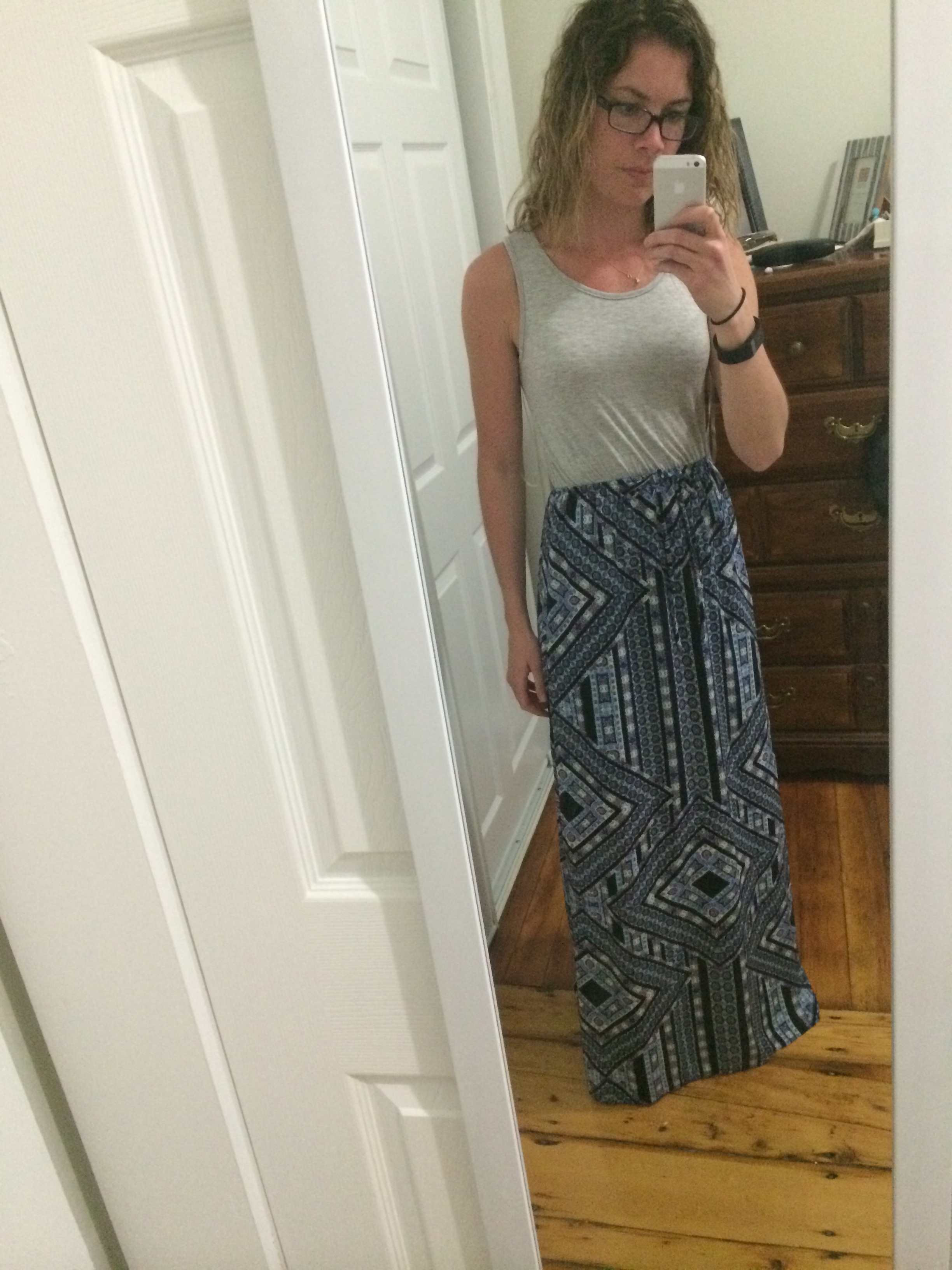 I loved this dress!! And, for the price, it was a sure keeper… I thought it would’ve been much more. I love the cotton top, which is comfy and will work with a normal bra, and I love the detail on the skirt part. It’s also long enough where I can actually wear wedges, which doesn’t generally happen to me with maxi dresses!