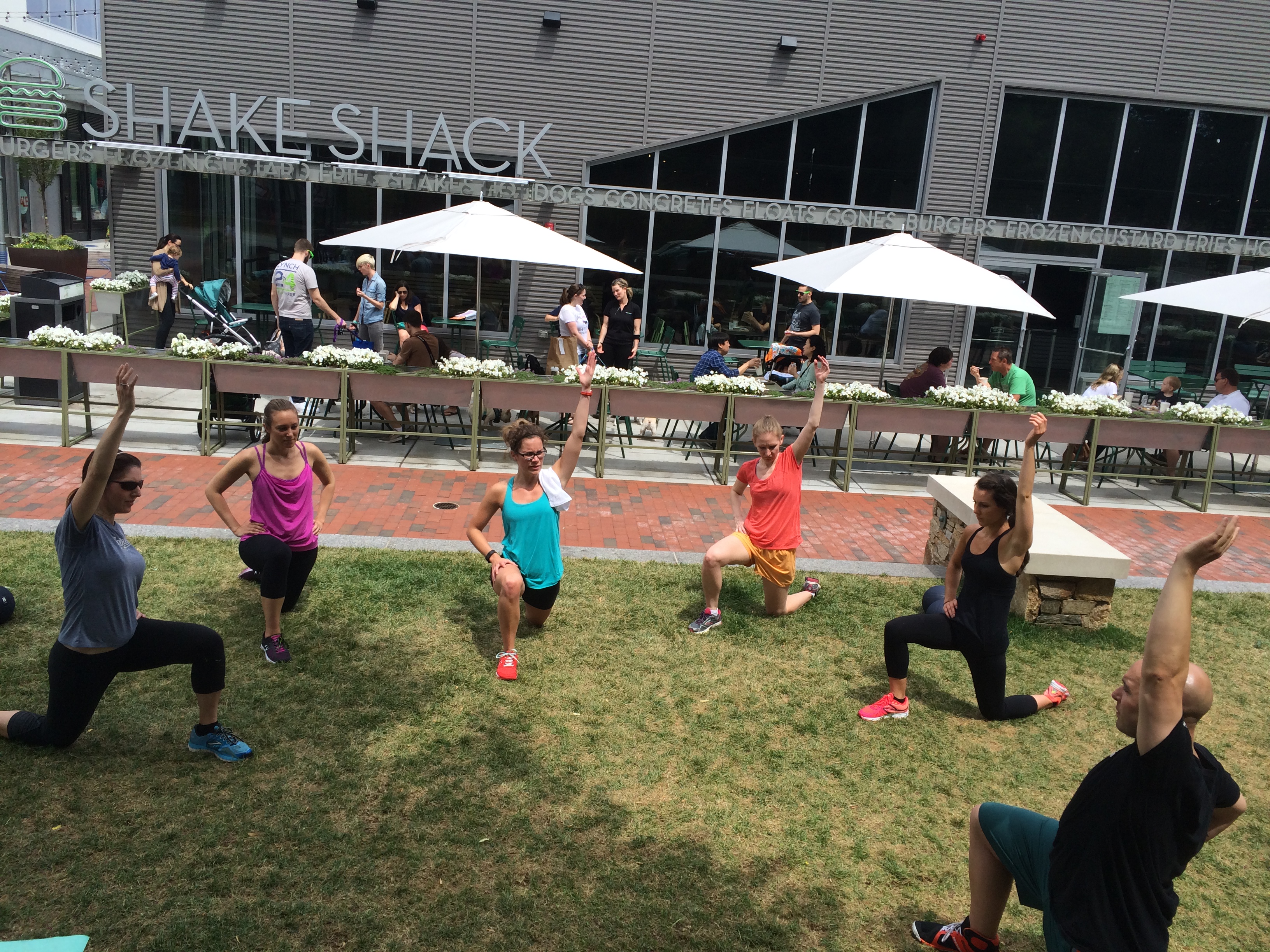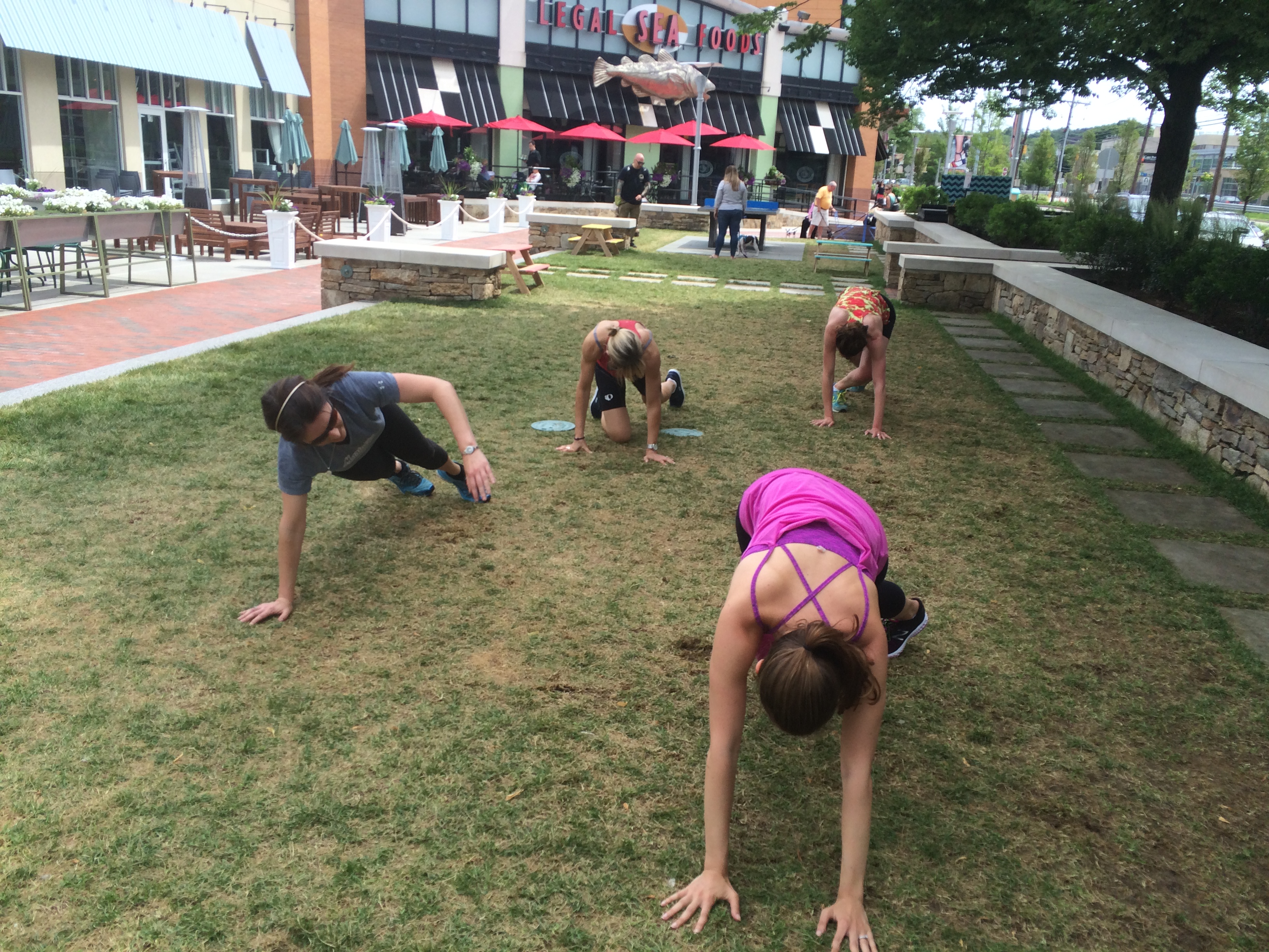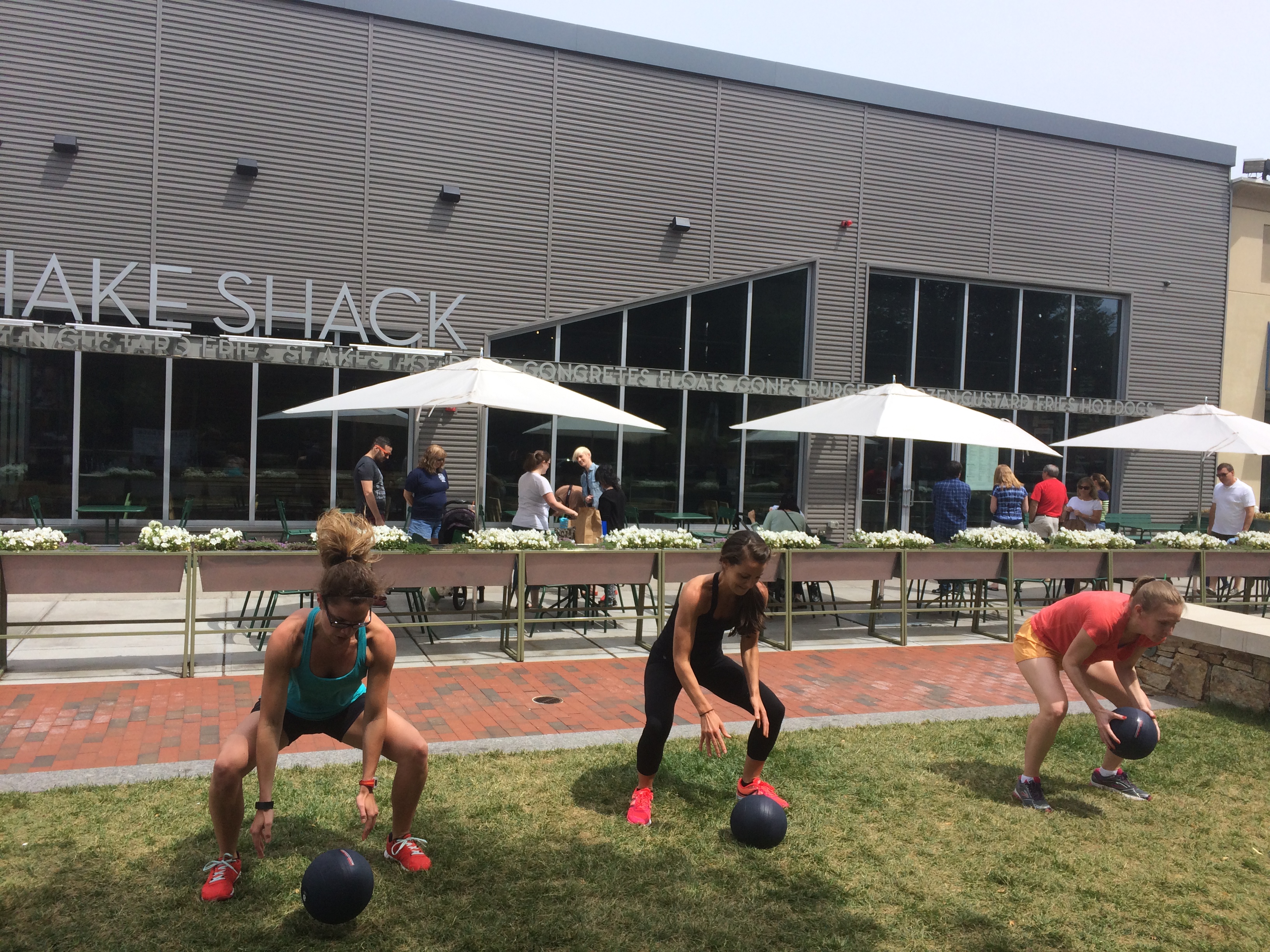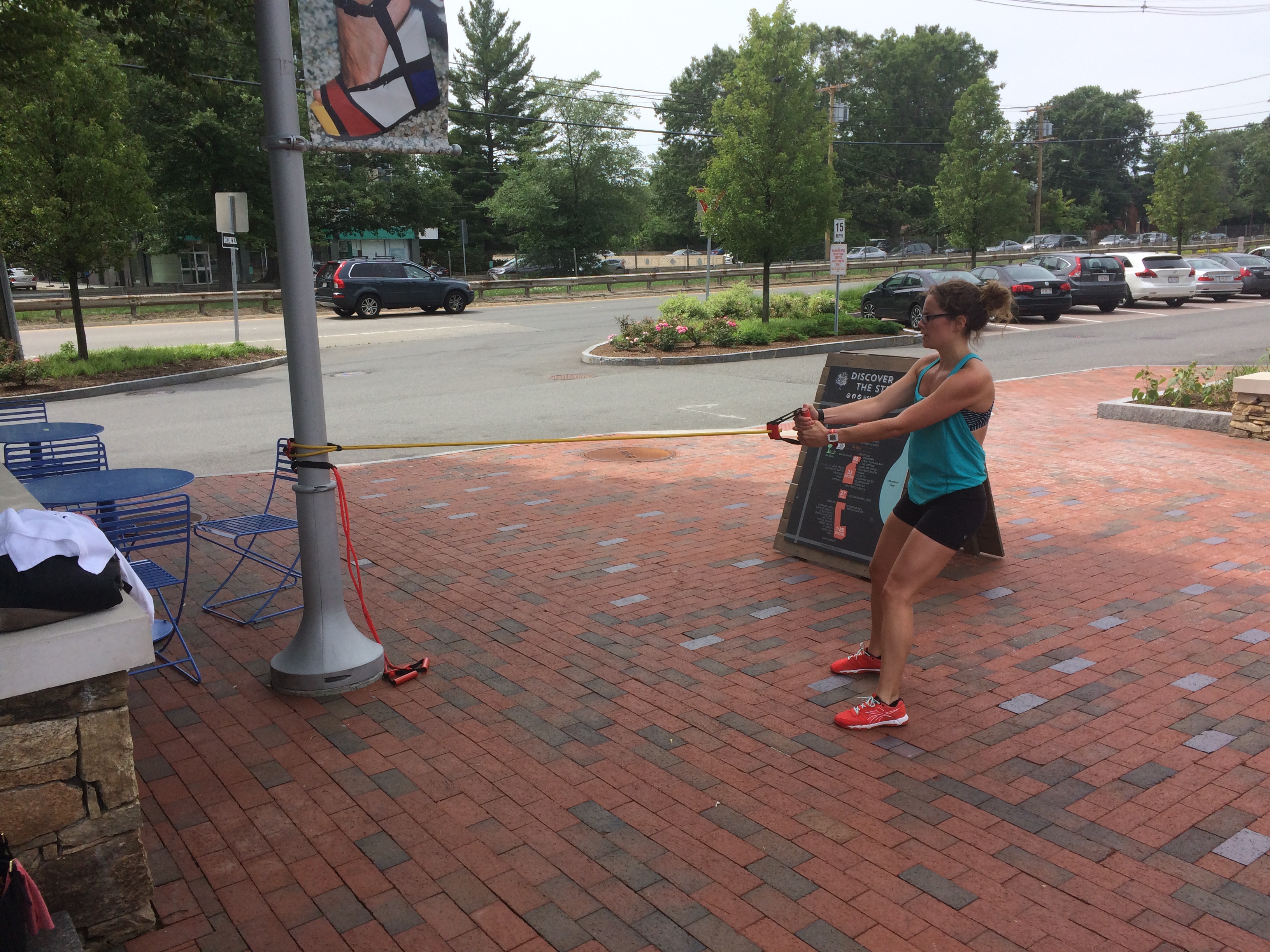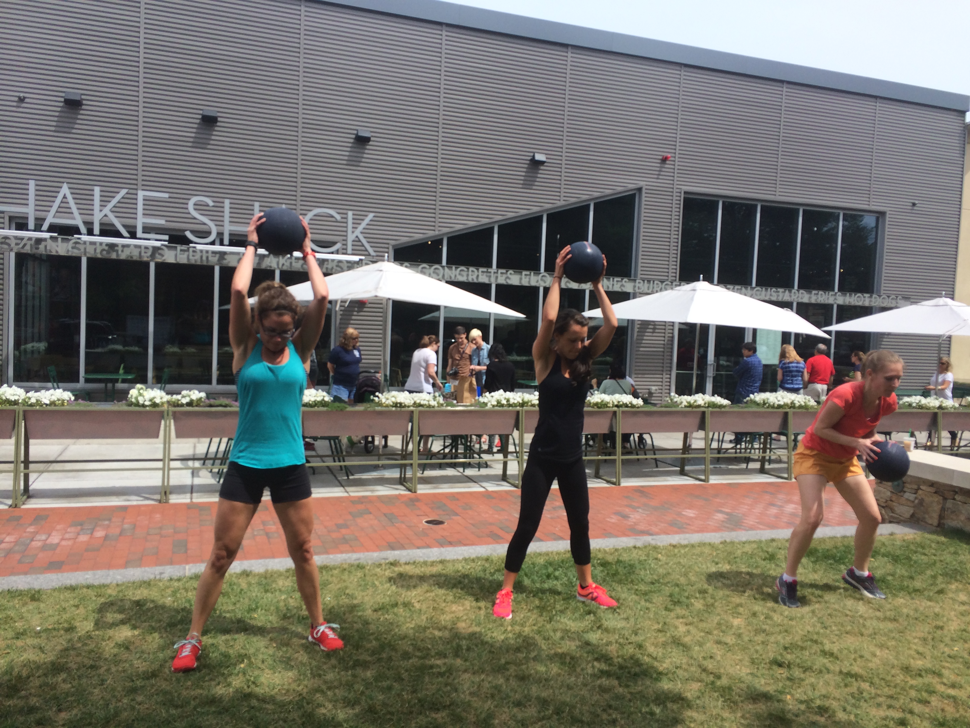 Saturday I headed over to Chestnut Hill for the #streetsweat workout event lead by MOVE Fitness. In case you missed my initial blog post, check it out here. And don’t forget to enter the giveaway! I’ll pick the winner on Thursday morning. Back to the workout- it was really fun! At first I didn’t think it was going to be my type of challenging, but Ron and Sabrina did such a great job showing more advanced options as well as less advanced options so that everyone felt good during the workout. I ended up working really hard and felt it the next day. We did all sorts of fun things with the heavy sand balls, bands and our own bodyweight.