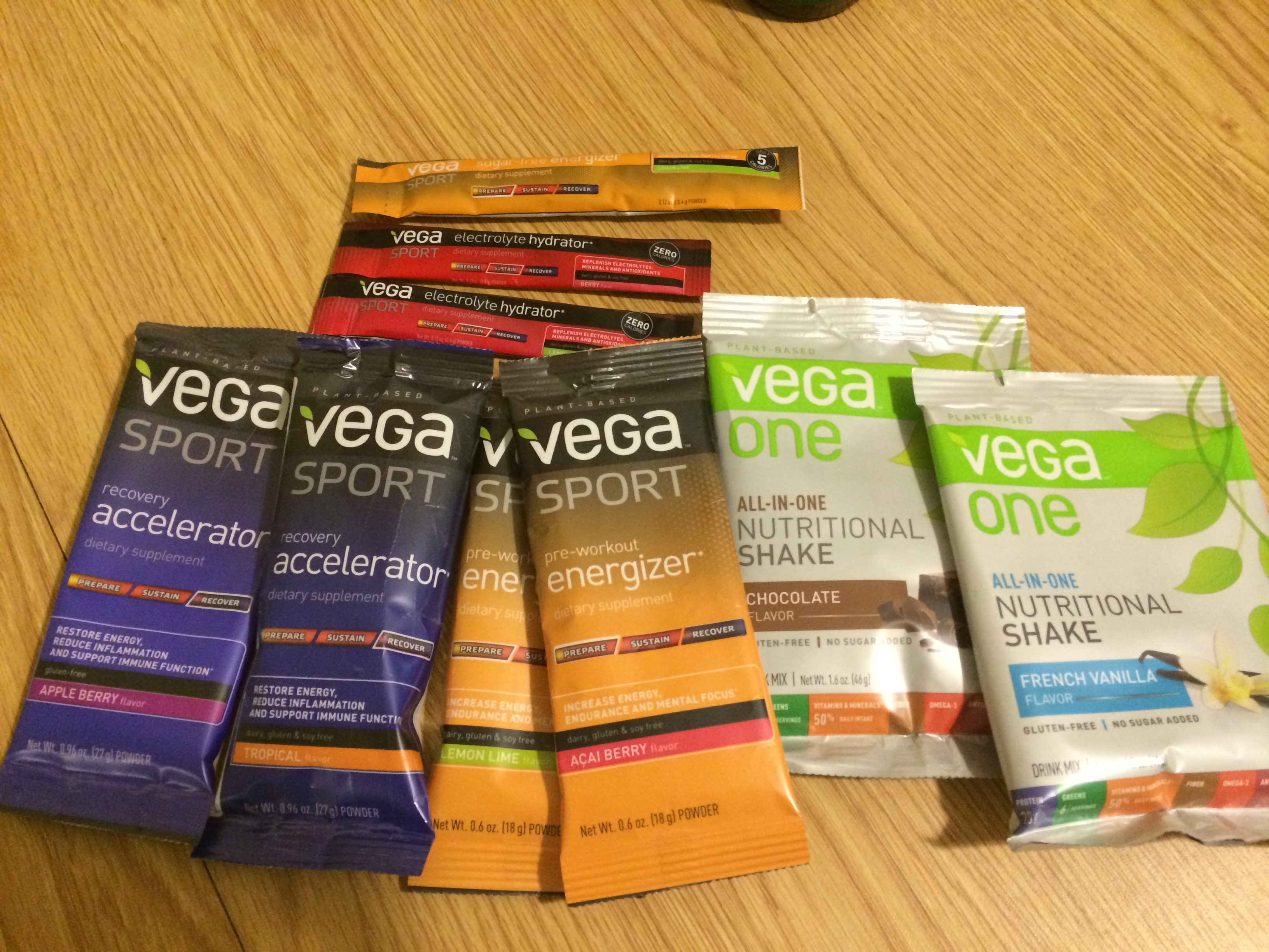 As far as workout related supplements, she loaded me up with lots of Vega products- pre and post workout supplements as well as some mixes to drink during long workouts.