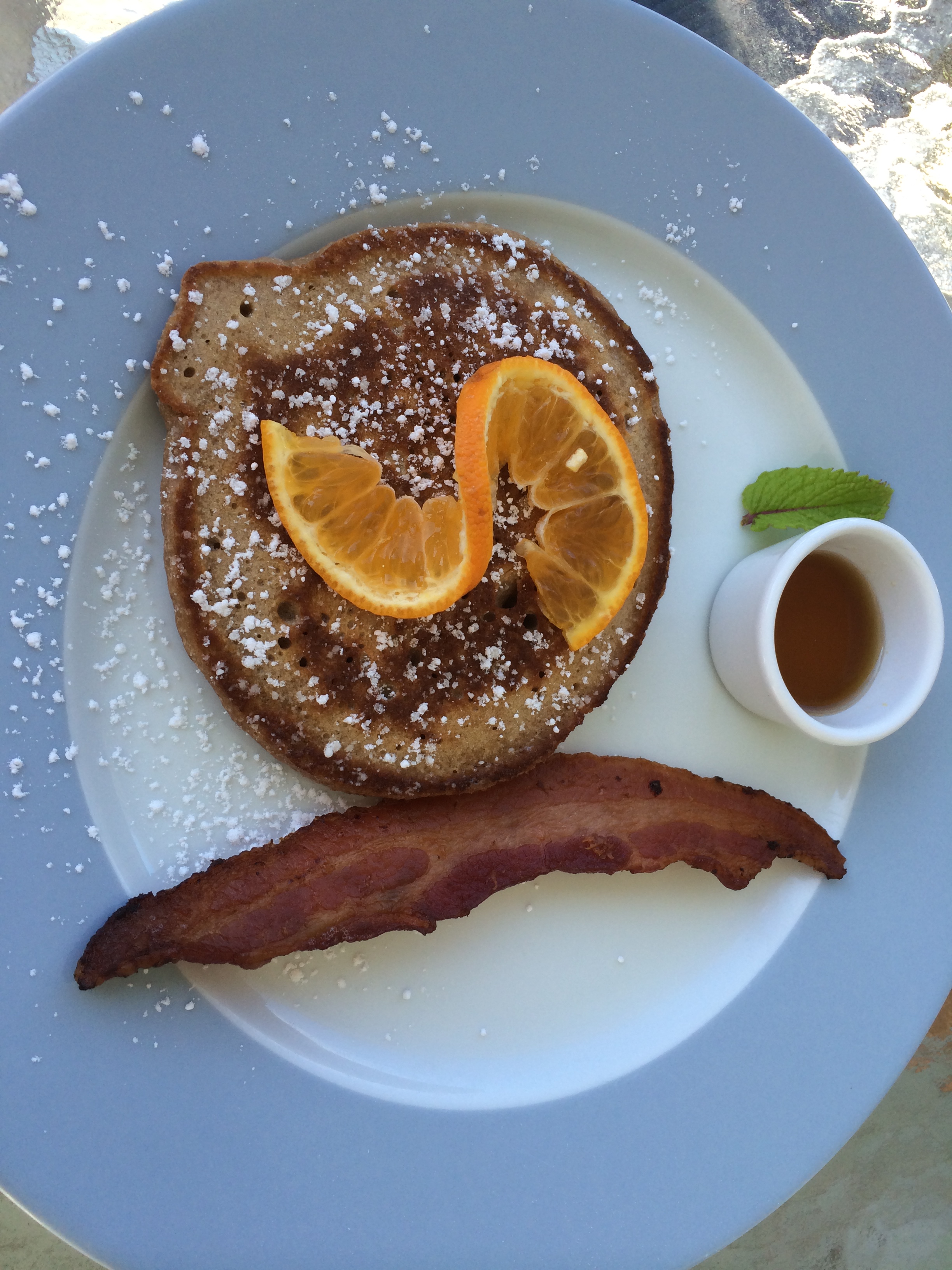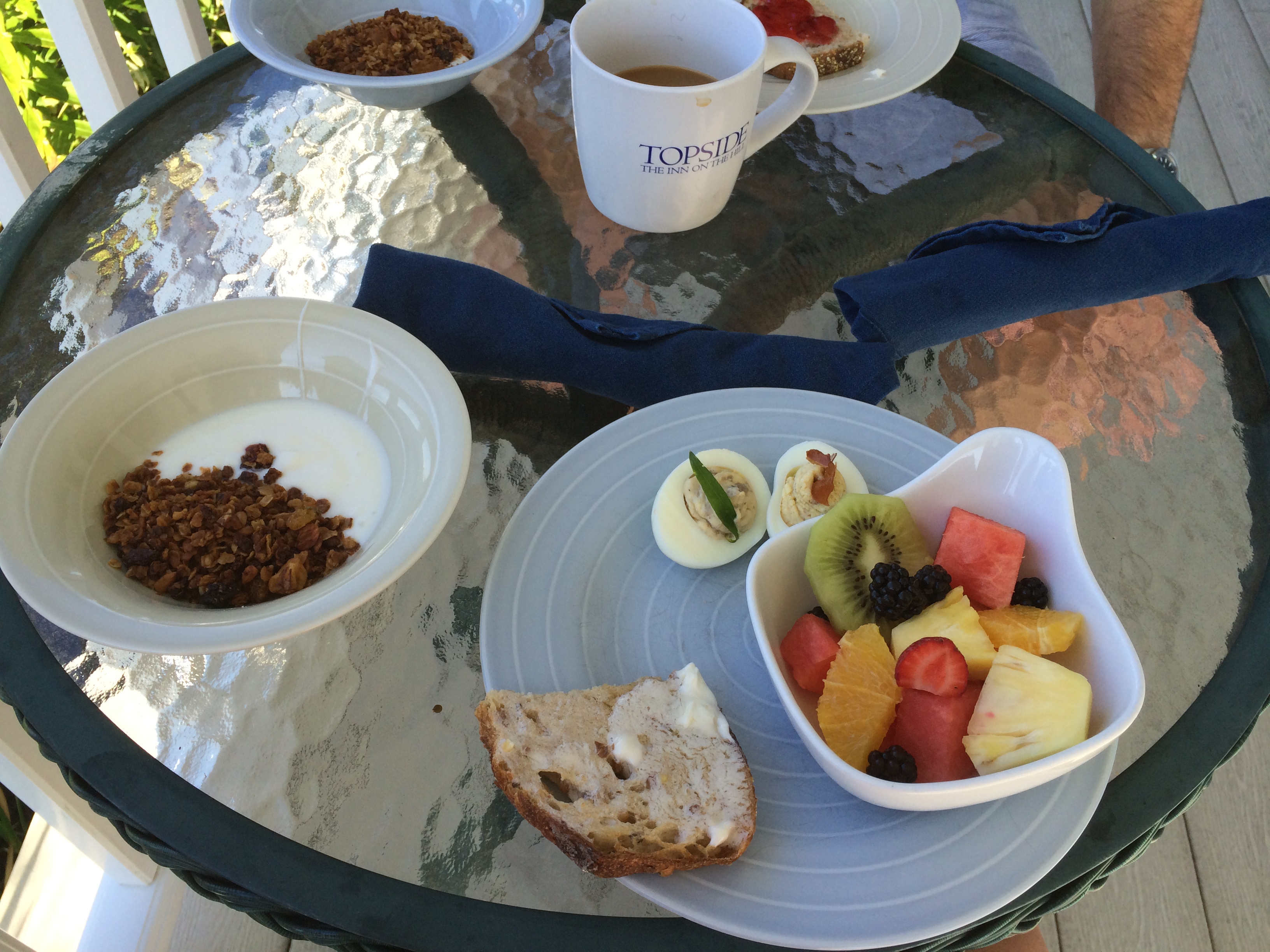 By the time we finished dinner, we were pretty beat and decided to skip the first night gathering and get to bed early. We were so happy we did because we woke up on Saturday feeling great! One of the things I love most about staying at inn’s is the fact that they usually have a decent breakfast. Topside Inn wasn’t just decent, though, it was incredible! They do a “standard” continental breakfast (I say “standard” because it was well above standard) consisting of coffee, juice, homemade bread and jam selection, yogurt with homemade granola, fruit salad and another special item. For the main meal, they alternate by doing sweet one day and savory the next. Saturday was sweet and it was Chocolate Ricotta Pancakes… and, you’re right, they were as good as they sound. We opted to split the order, however after one bite we wished we hadn’t! I wish we got the recipe as these were really, really good.