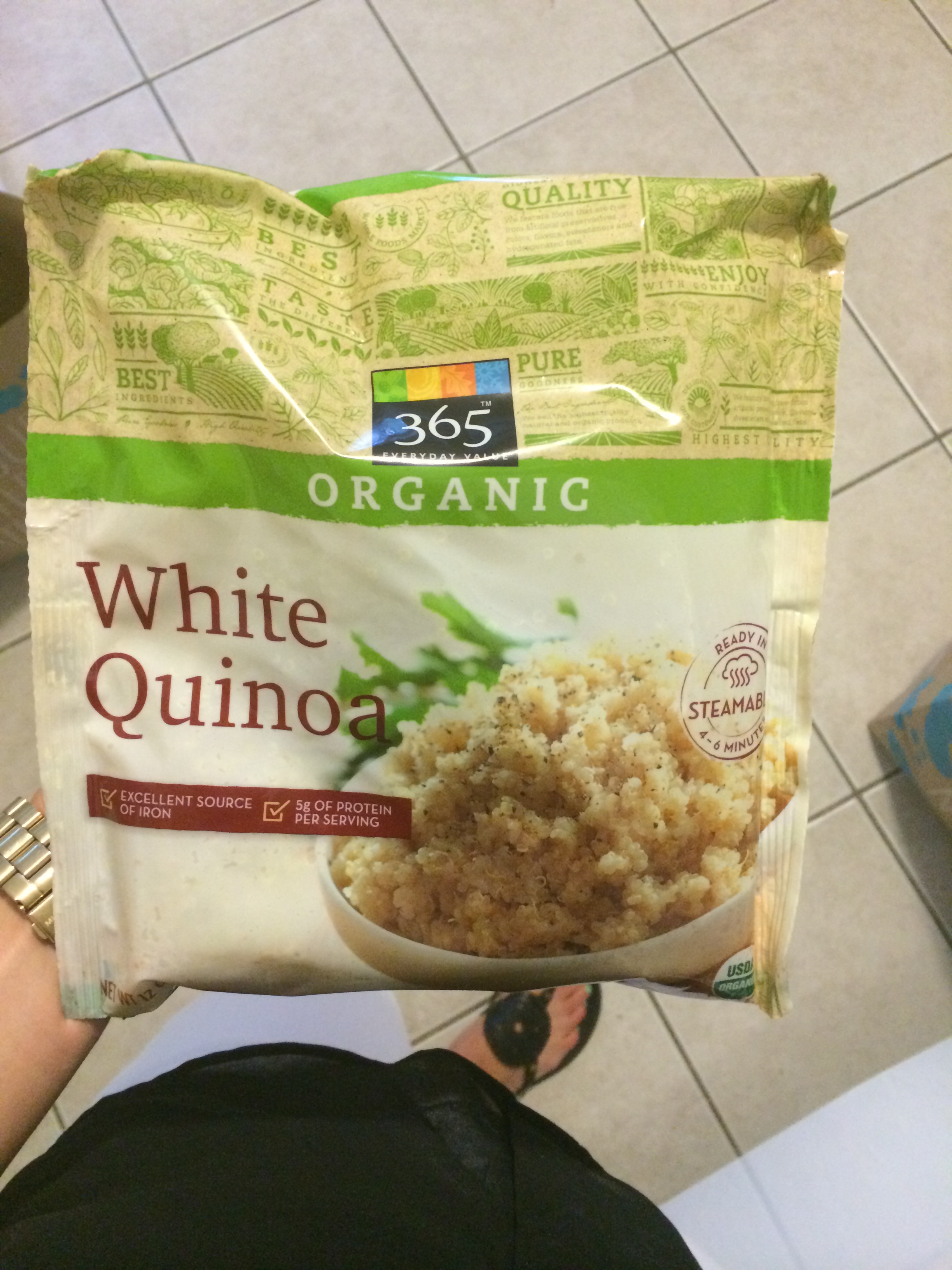 From there, I thought about how I could throw those together, while coming up with something different than the Caprese Orzo Salad I made when my parents were here. Enter: Loaded Quinoa Salad. In addition to the ingredients above, I picked up an ear of corn and can of black beans… and frozen microwaveable quinoa! Have you guys heard of this? It’s amazing- in three and a half minutes I had some delicious quinoa ready for my use. Normally I’d just make it on the stovetop, but I had already packed all of my pots and pans so I needed to figure something else out. This worked perfectly.