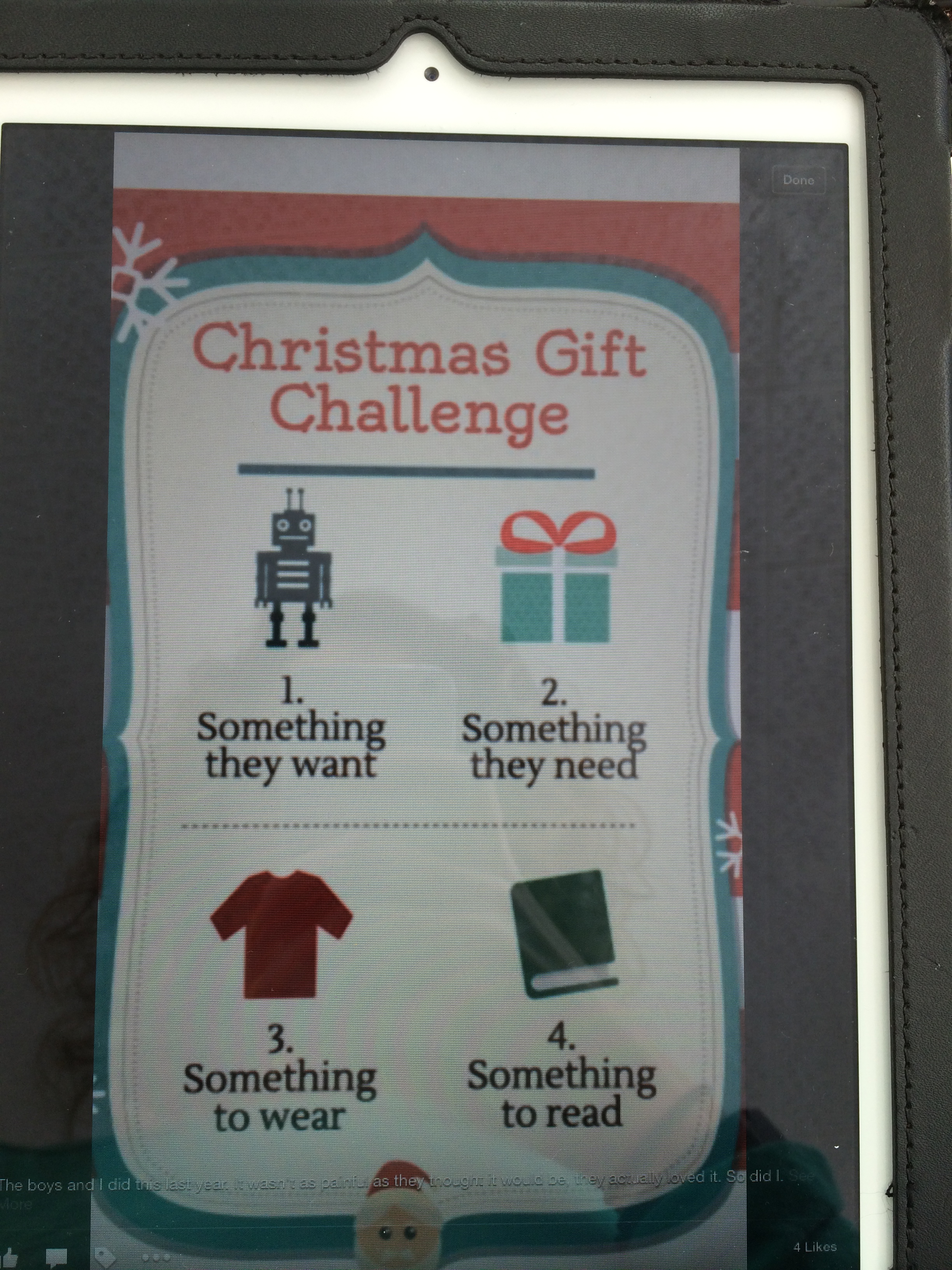 2. Shopping list for this year- My cousin-in-law posted this on Facebook and I instantly loved it, especially since holidays and birthdays will be light this year due to the wedding. I mean, do you really need more than these 4 things?