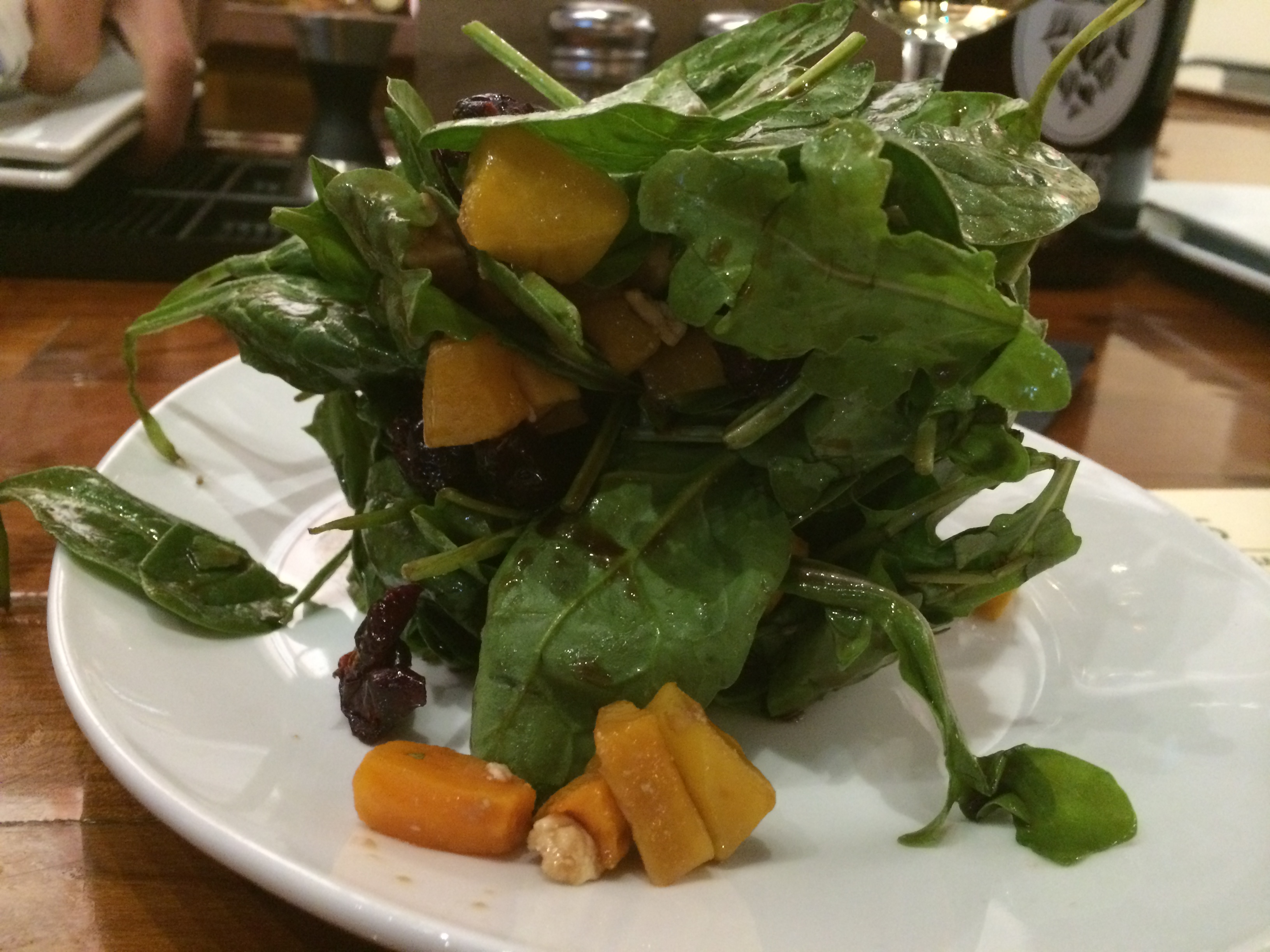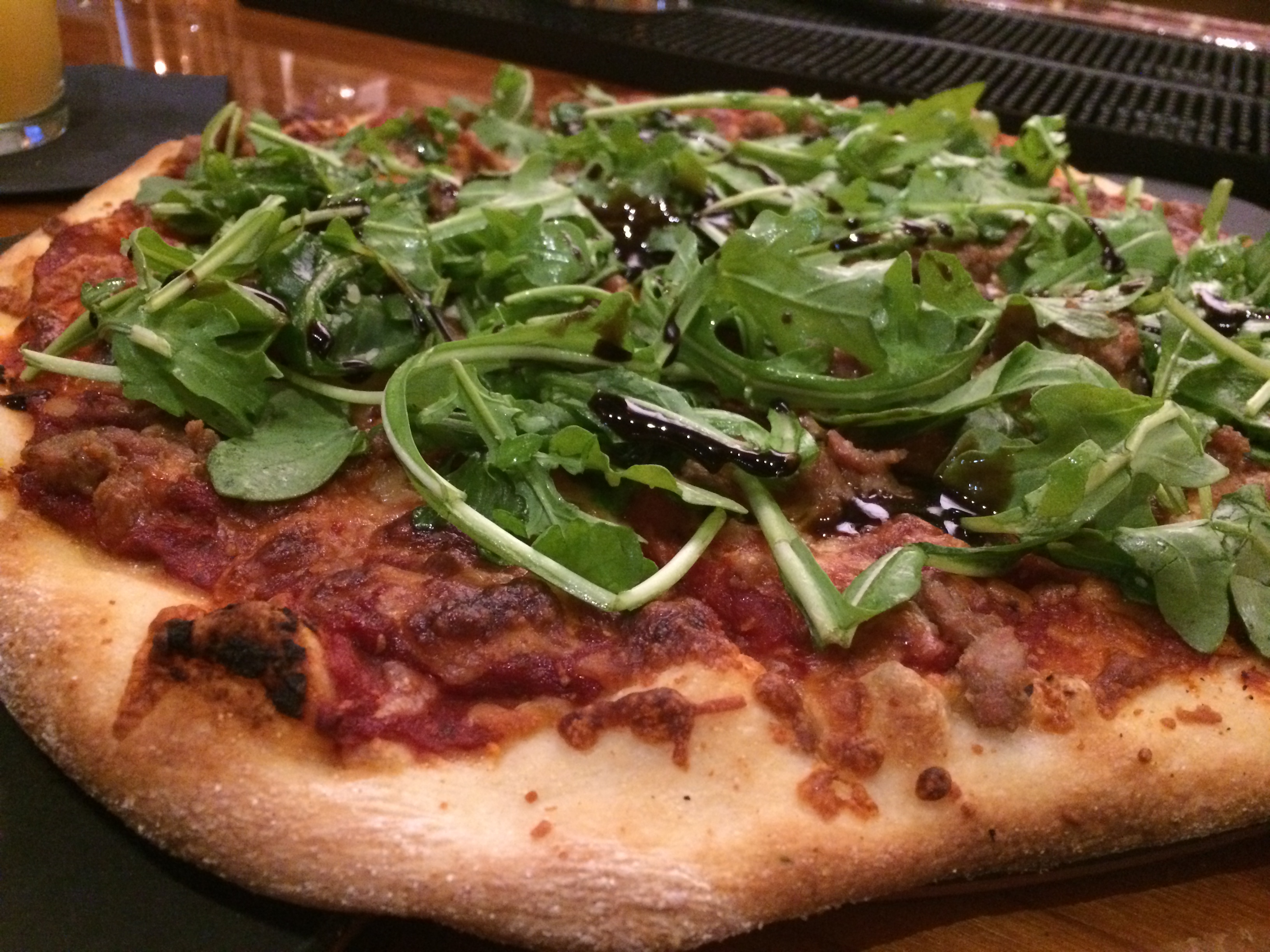 RM got home shortly after me and we decided to walk to Hopsters for a drink and dinner. I was there last Friday night with my sister so it was funny to be back again! We decided to get the sausage and arugula flatbread and harvest salad and both were incredible, the pizza especially. Wow- so so good!