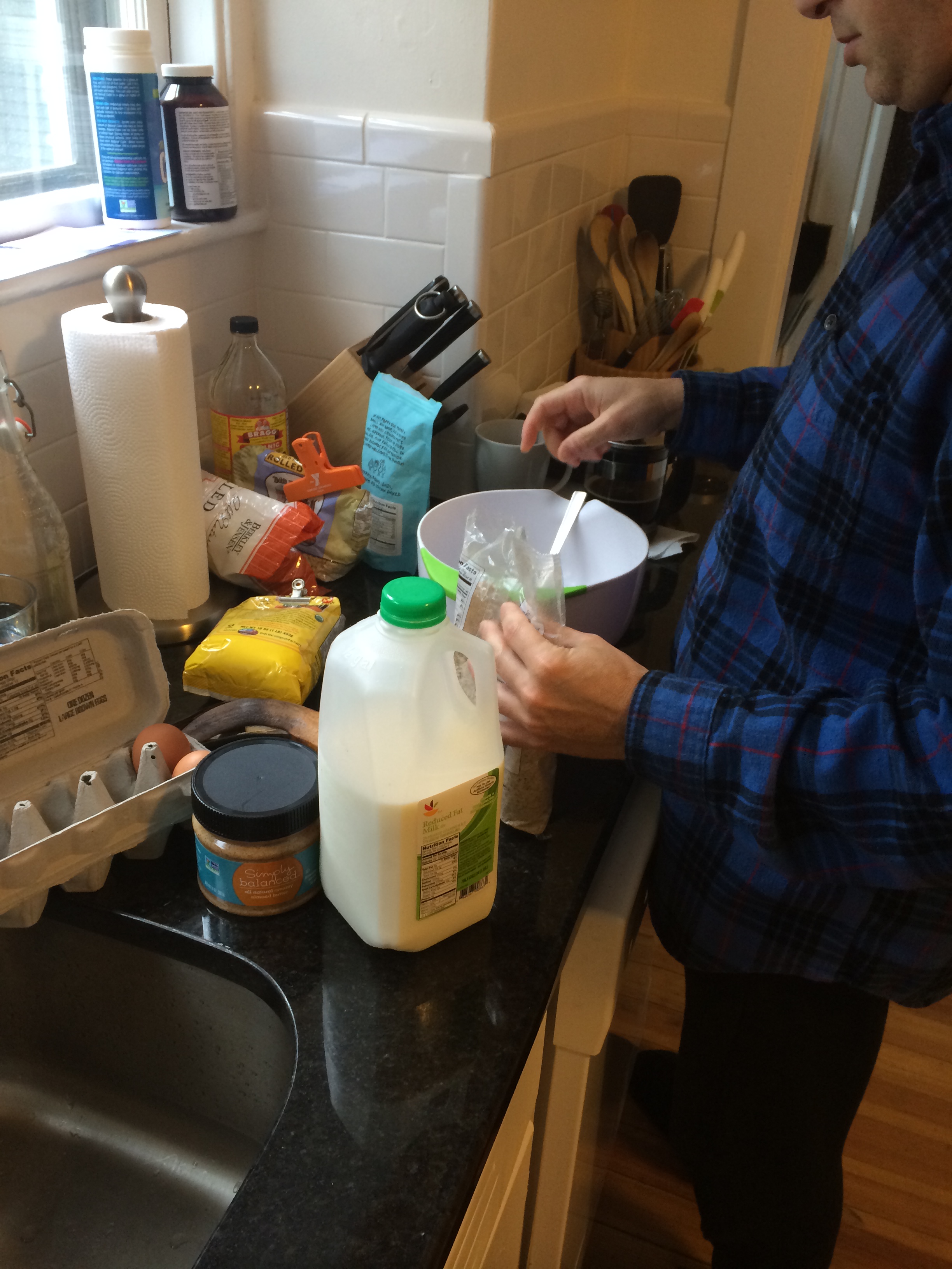 Saturday morning we woke up kind of early and decided it was a good morning for healthy pancakes so RM got busy.