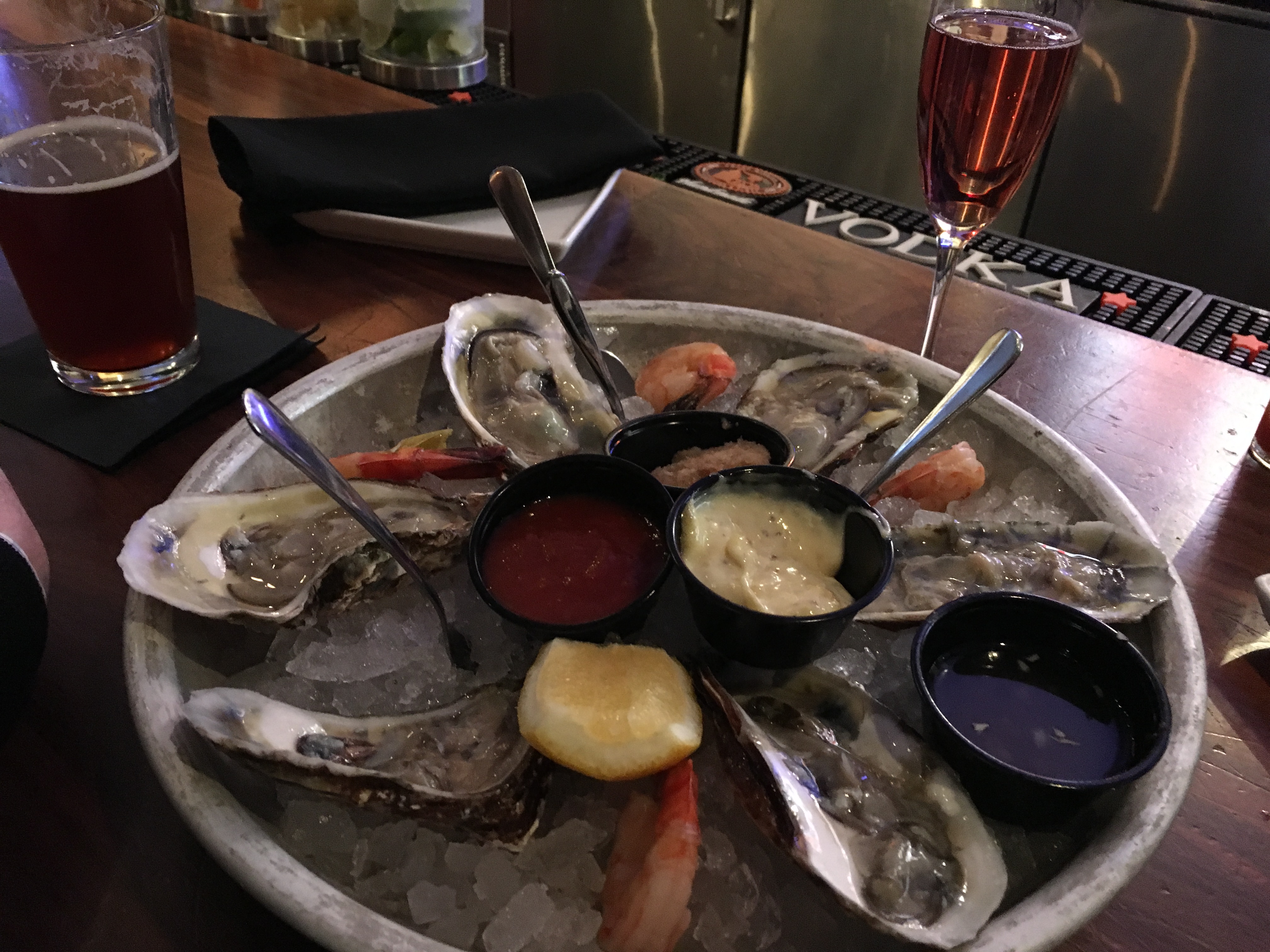 When I met up with RM, we ended up going to Nix’s Mate- I enjoyed a rose bubbly, he had a delicious beer and we ended up getting some oysters and shrimp since they were only $1 each!