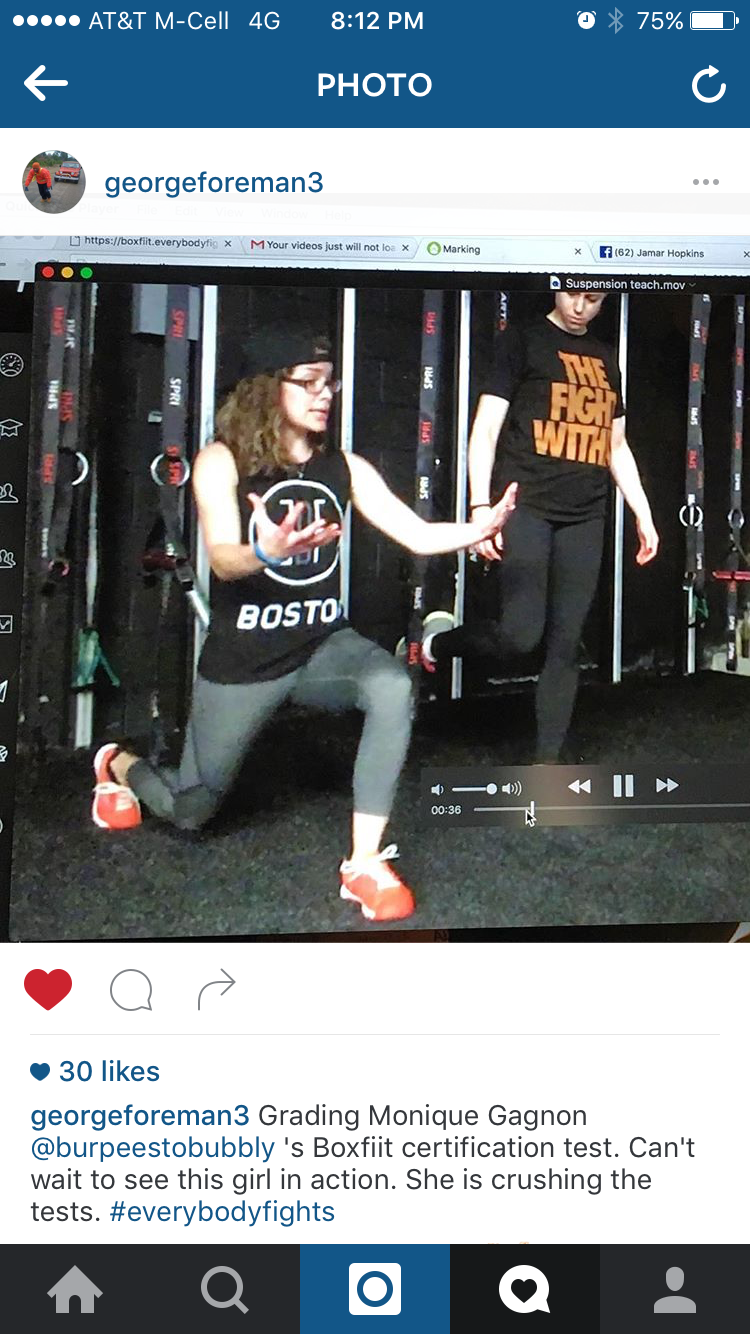 - BoxFIIT Update– I got an email from George Foreman III the other day saying that I passed all of my boxfiit video submissions, which was the best email ever! I worked so hard on getting everything in and doing the best job I could, so to hear him say he felt confident to have me start teaching whenever was such a great feeling. I’ll let you guys know when I have a class on the schedule (either there or in Watertown at GymIt) and hopefully you can come check it out!
