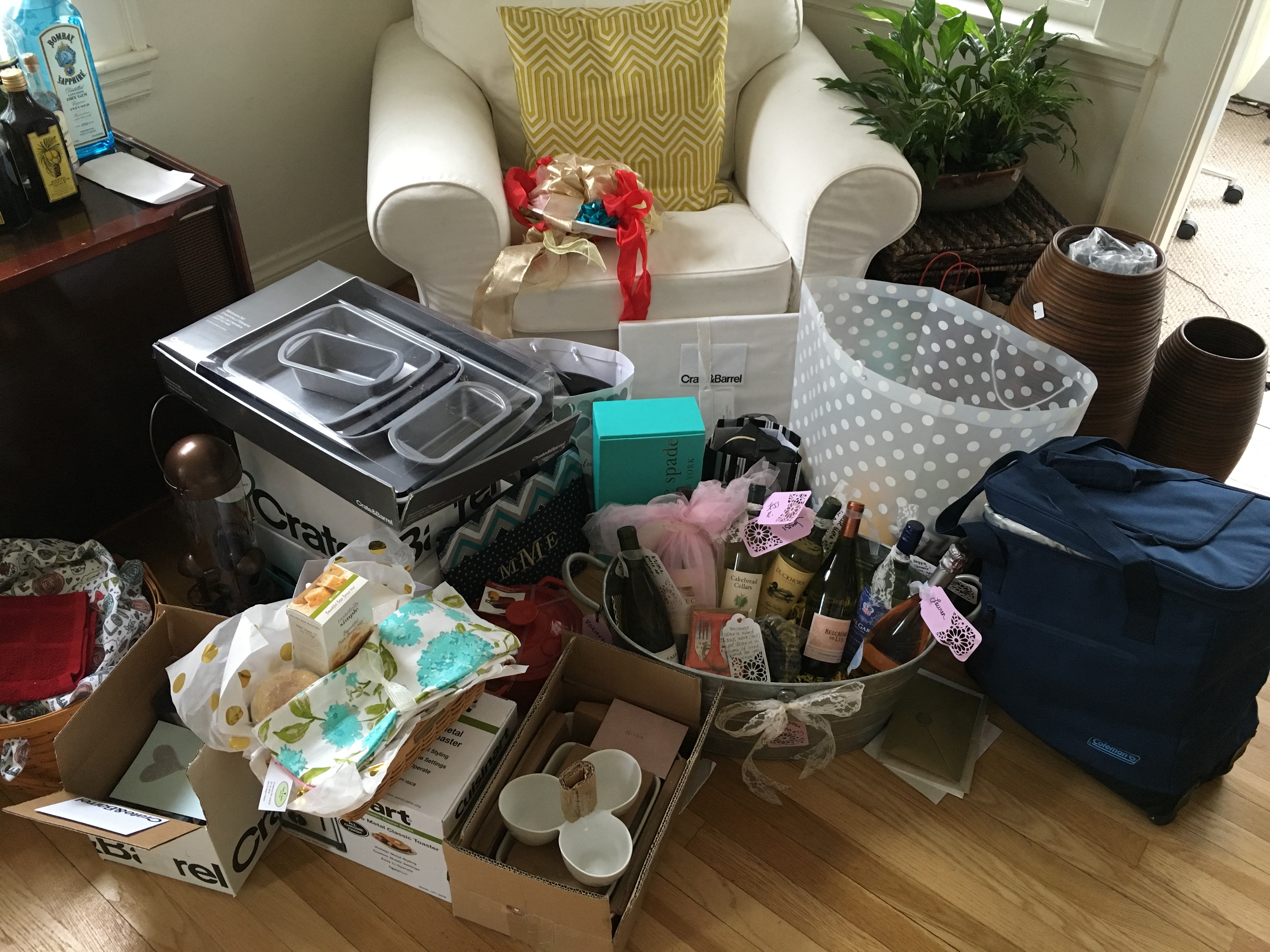 What I loved about the shower was that it was at a home and not a restaurant because it allowed people to mingle and move around and chat without being confined to just one table. We had received a lot of gifts previously that people had sent to our house, but we still received some awesome gifts that people brought to the shower, too! So many great things- I can’t wait to do a big “out with the old, in with the new” sweep through our kitchen 🙂 Oh, and this shirt from my mom that says “I can’t keep calm, I’m the bride”, couldn’t be more fitting 😉