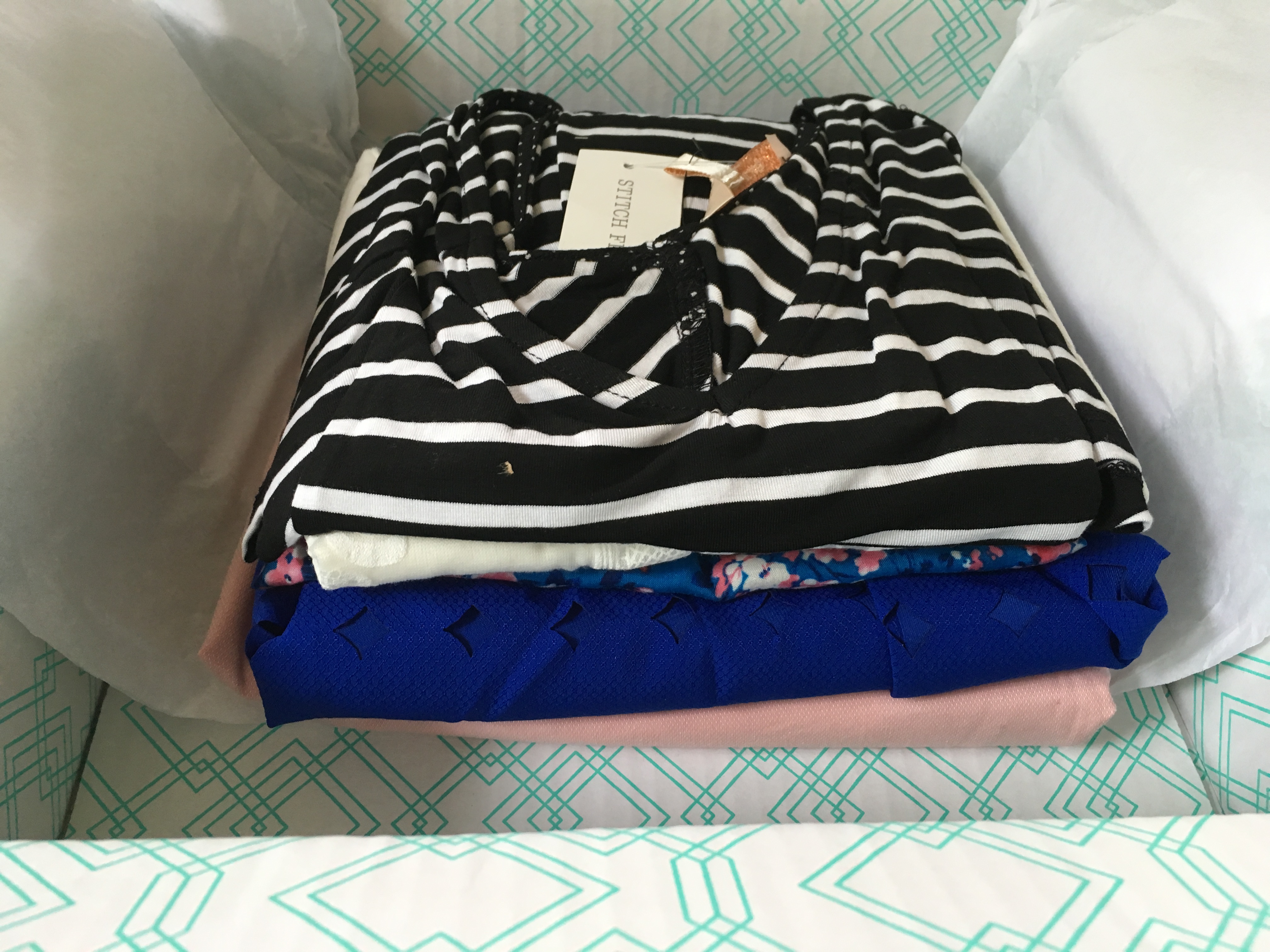 Good morning! I hope you’re having a great week. Mine has been a bit stressful and overwhelming, but thankfully the long weekend is almost here! While I was away for my bachelorette weekend (which, I still need to recap for you!), I received a Stitch Fix delivery- such a fun surprise to come home to. For those of you who aren’t familiar with Stitch Fix, it’s an online personal stylist service where you plug in all of your information when it comes to clothes and style (size, likes, dislikes, etc.) and then they put together a “fix” for you. Each “fix” is $20, but if you keep anything from the fix then the $20 gets subtracted from whatever the price of the item is. While the prices can sometimes be higher than I’d normally spend, sometimes the convenience of having things sent right to your house far outweighs the time it takes to go shopping and look for deals. Plus, it’s fun getting a package containing things you might not otherwise find or look for!