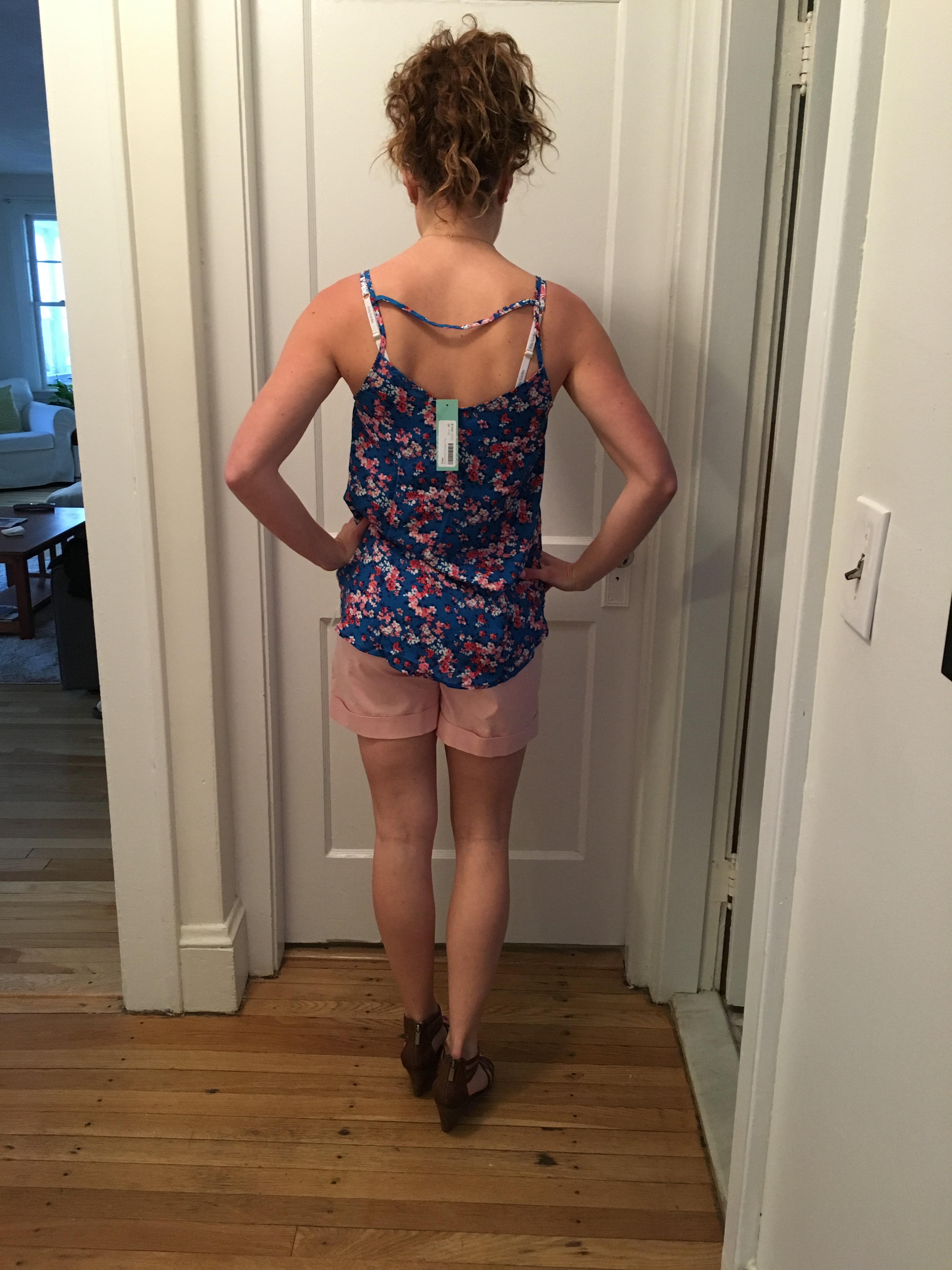 This shirt was so comfy and I could see it being a summer staple- either with shorts (loved it with the shorts they sent in this fix!) or with jeans or even leggings. I liked that the back had a little extra funk to it with the strap at the top and I love how bright the colors are! $48 is a little more than I’d normally spend for a thin, summery shirt like this, but again- convenience factor 🙂