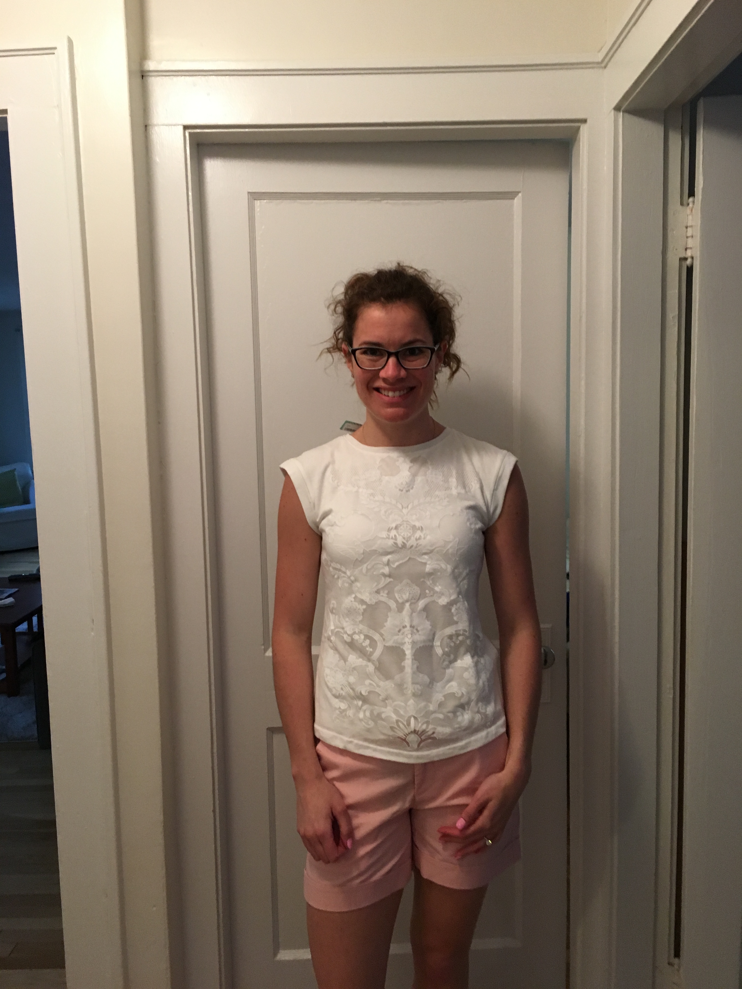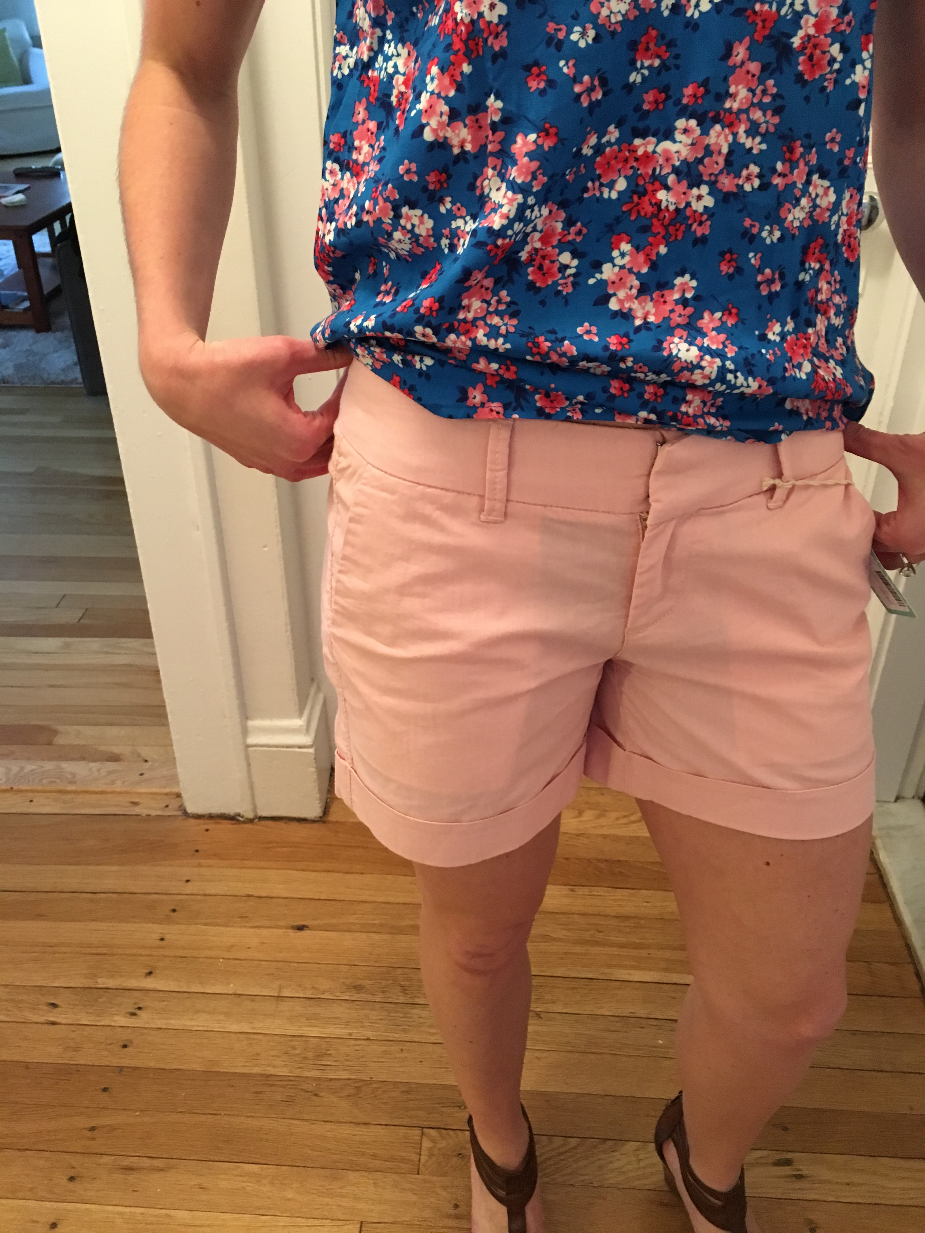 I really went back and forth on these shorts. Part of me liked them when looking back at photos and when trying them on again, but the other part of me looks back and isn’t sure if I should’ve kept them- do they look too loose/baggy? Do they look too long and boring/like I’m going golfing? Too late to look back on them now- they’re in my drawer! I think I will get use out of them, though, because they are SO comfortable.