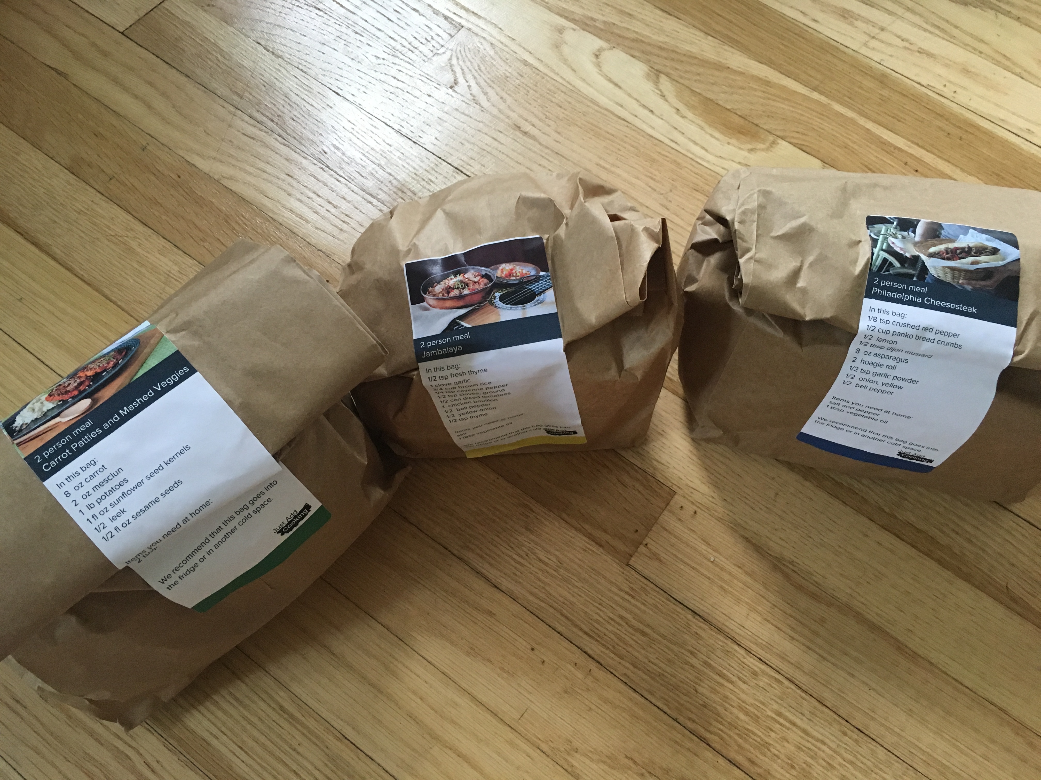 When I received this month’s delivery, I was surprised to see new packaging. Normally the ingredients would all come mixed together in the box and you’d have to figure out what went with what meal, but this month they nicely grouped the meal ingredients together in their own bag, which made it SO easy to literally just grab the bag and get cooking. And, even though it seems like a lot of extra packaging, most of it is recyclable and still far less than what other food delivery companies are using so it’s really not bad.