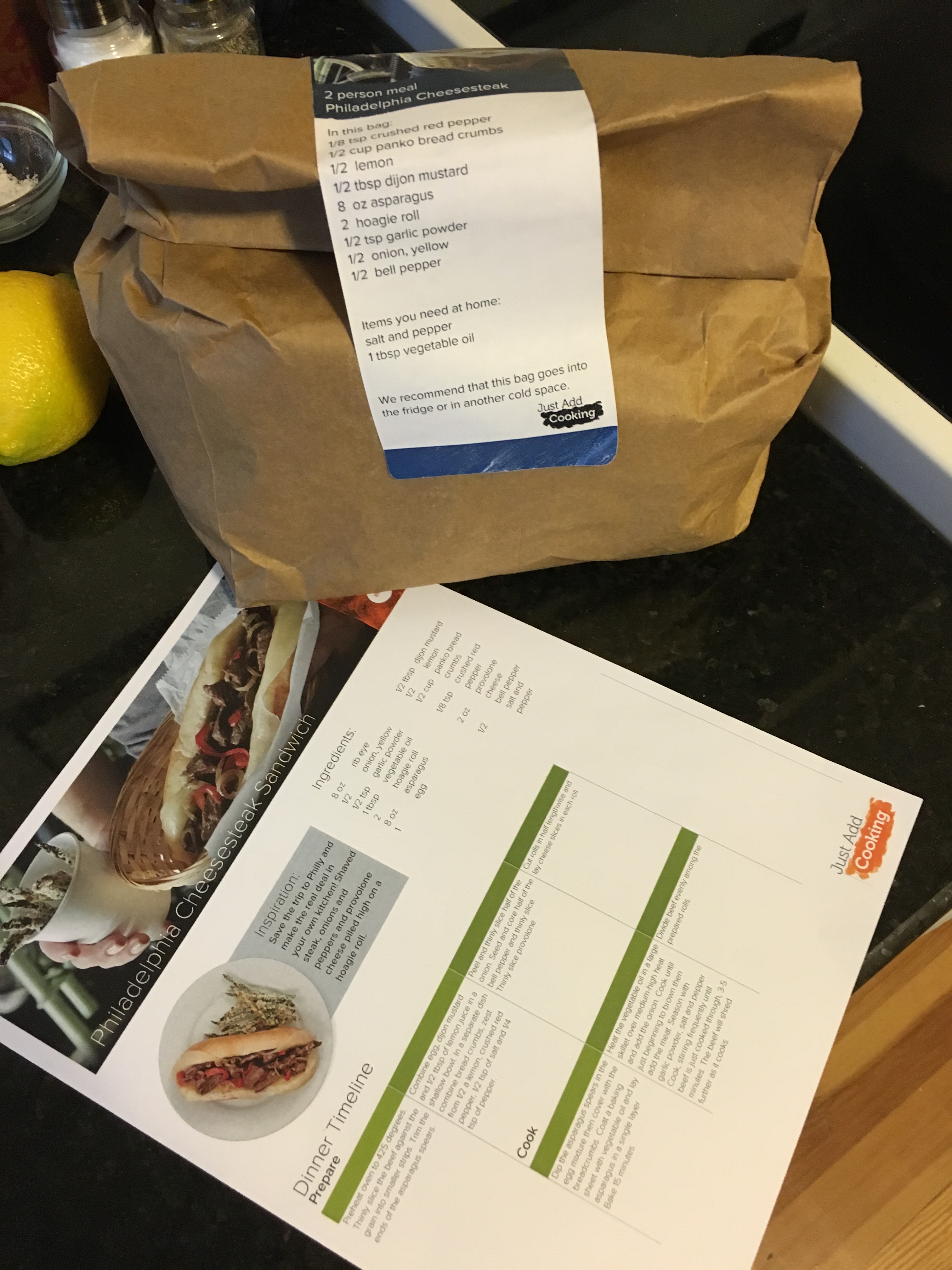 For our meals last week, we chose the Jambalaya, Philadelphia Cheesesteak Sandwich and the Carrot Patties and Mashed Vegetables. I always love seeing where the food is sourced from (since they source locally as much as possible). This week the Bacon was from North Country Smokehouse in Claremont, NH, the all natural, GMO & antibiotic free chicken thighs were from Allen Farms, the Hoagie rolls were from Pain D’Avignon in Hyannis, MA, asparagus from Warner Farm in Sunderland, MA, etc. Here’s a glimpse into the meals!