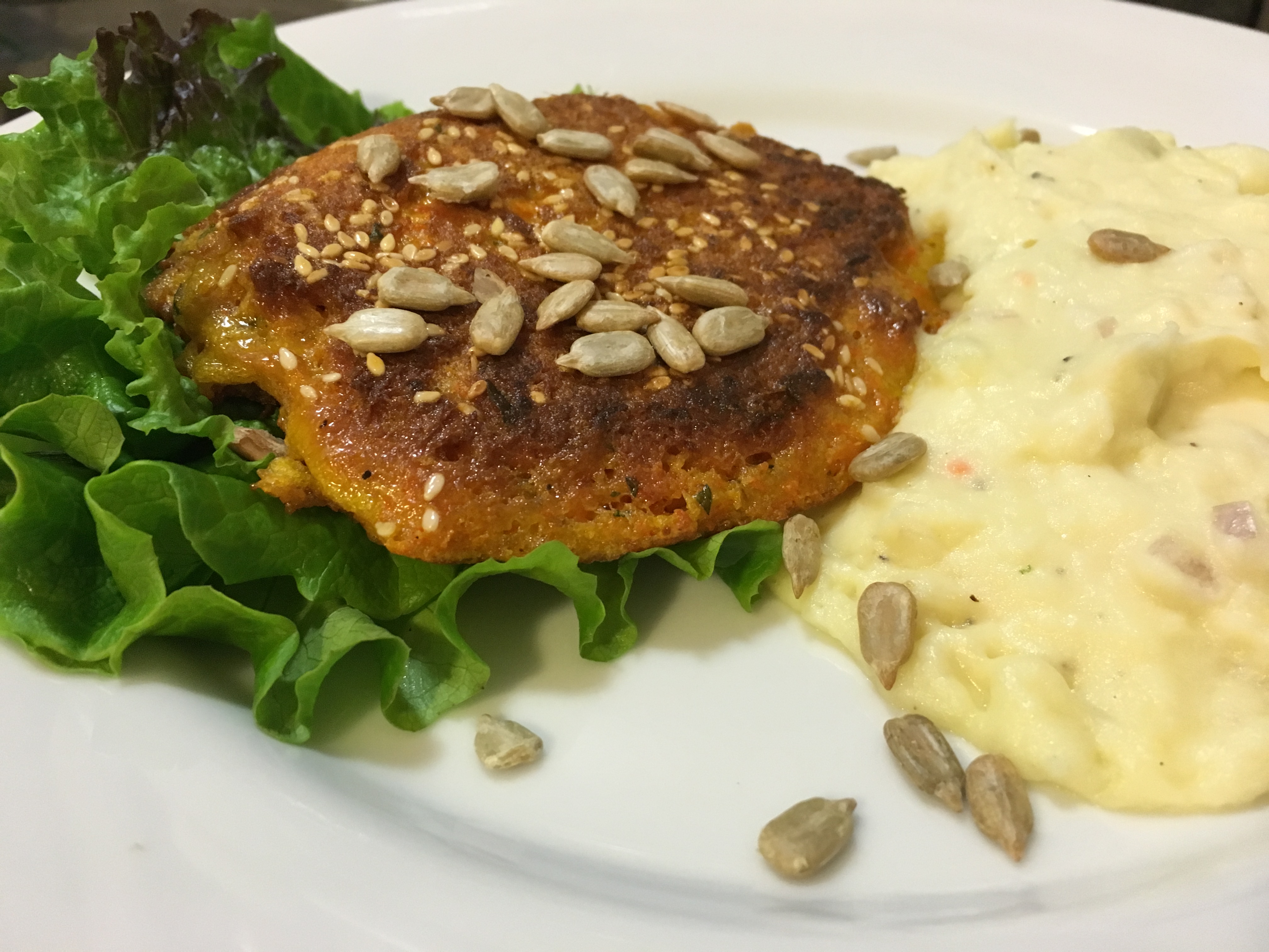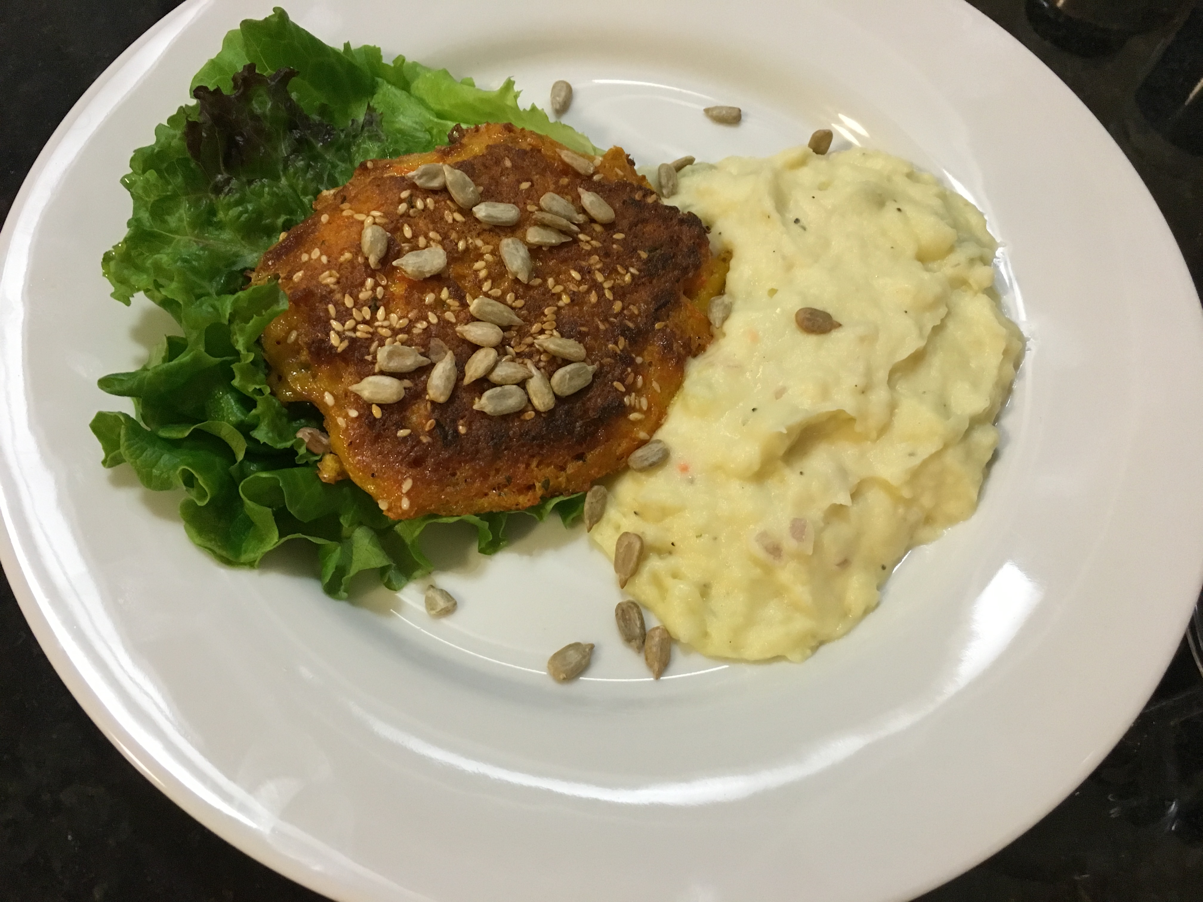 This was the first vegetarian meal that I ordered from Just Add Cooking and the only reason why I ordered it was because I loved the idea of the carrot patties and wanted to try them out because I could see them being a staple at our house. This was a close second for me behind the Philly Cheesesteak sando’s! I thought the mashed veggies (potatoes, leek, shallot, parmesan cheese, etc.) had so much flavor and the carrot patties were way more interesting then they sound, haha We ended up adding a second egg to the patties and formed them in the pan, almost like pancakes, because they were quite liquid-y. I loved the crunch that the sesame seeds and sunflower seeds added and topped with Franks Red Hot, I was in flavor/texture heaven!