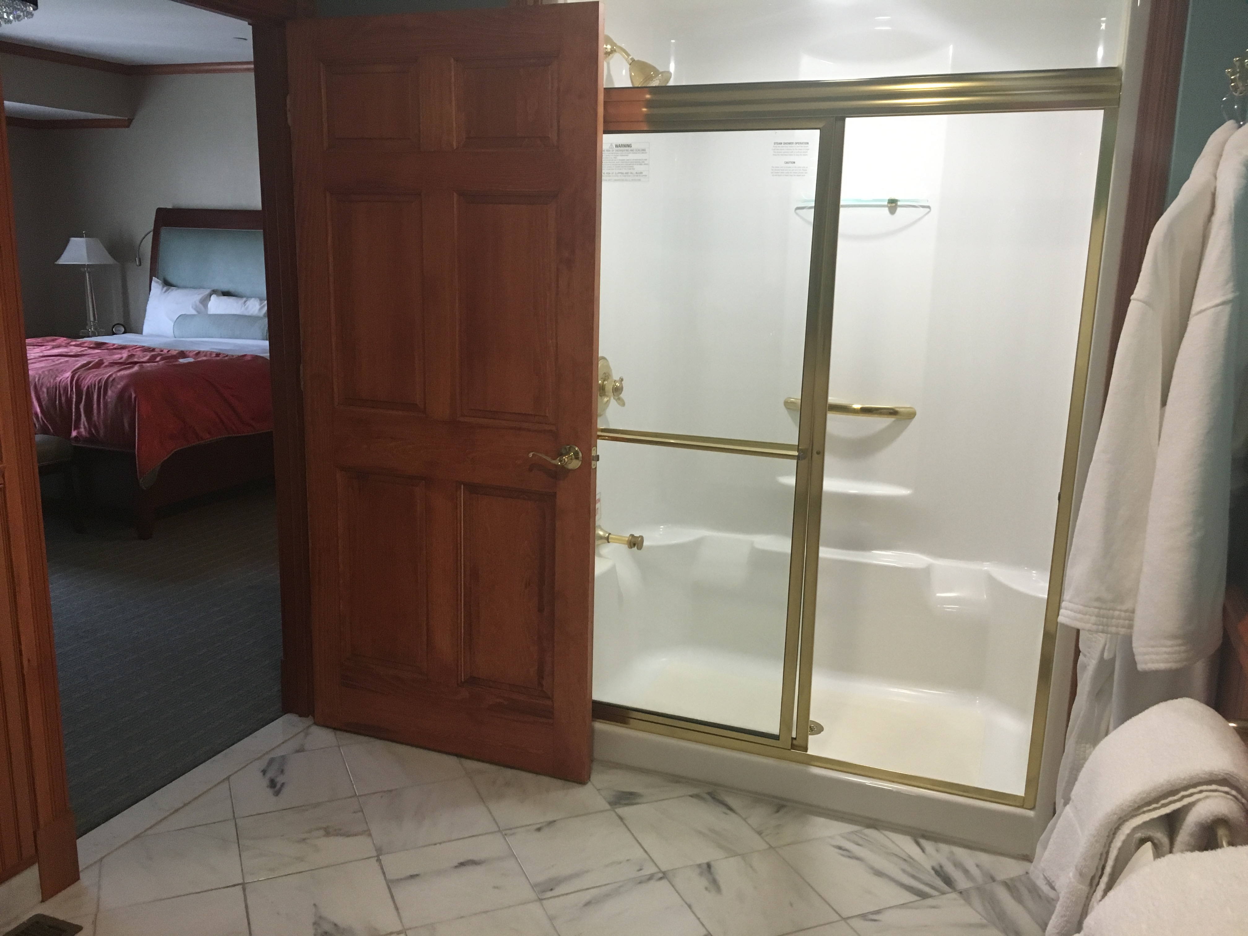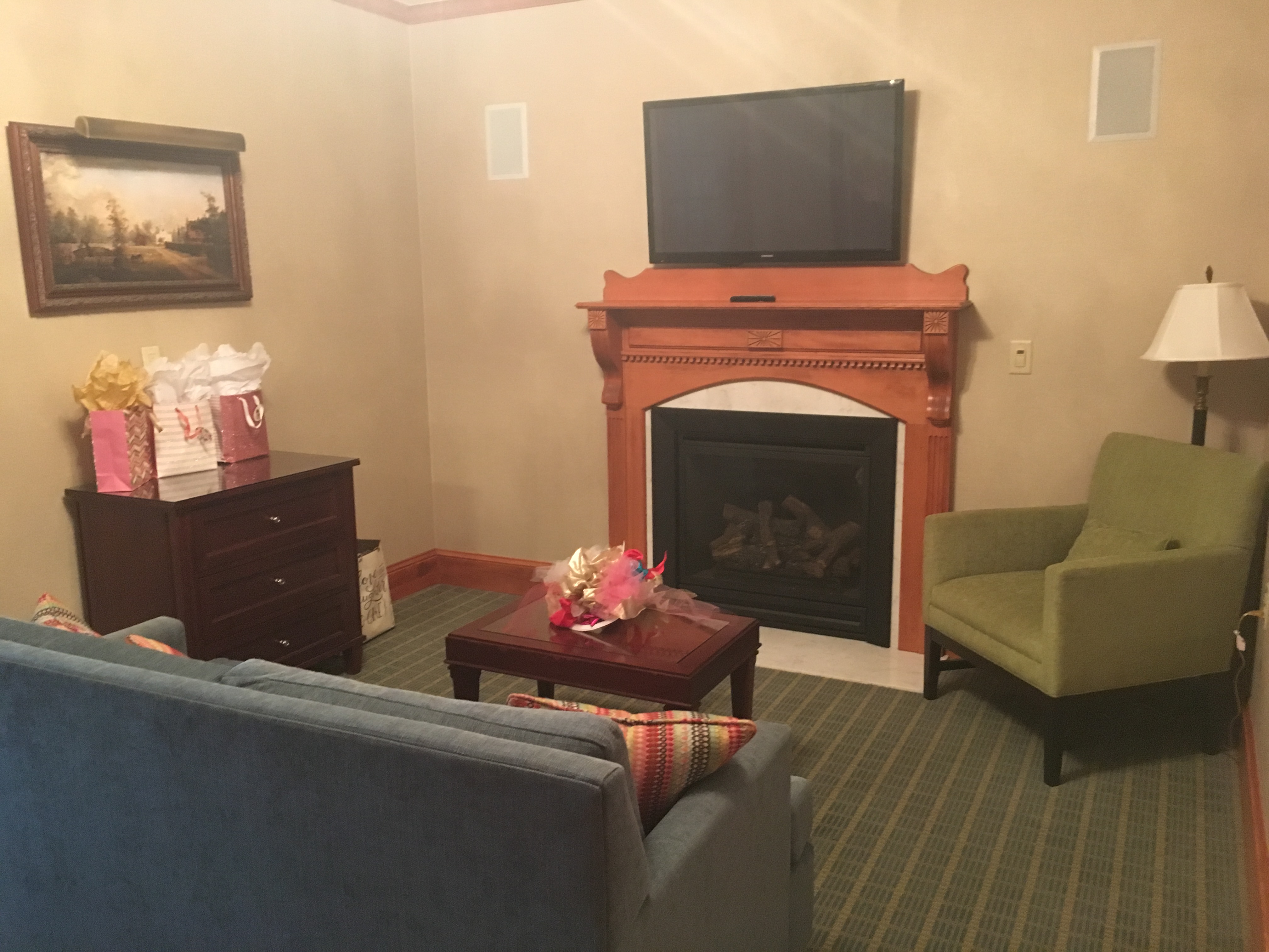 Quickly before I end the post, I wanted to share pictures of the room I/we stayed in. As part of the wedding package we were given 2 nights in their nicest room- and wow was it nice! And huge! Upon walking in we were greeted with a little living room and fireplace and then we walked into the bedroom with a huge bed and then the bathroom was off of that and was one of the biggest bathrooms I’ve ever seen! It was equipped with a steam shower, too, and off the bathroom we had our own private hot tub- so amazing, although we didn’t end up using it 😦 Next time for sure! If you’re looking for a beautiful getaway, The Wentworth Inn in Jackson, NH is a place you surely should check out. Everyone commented to us how nice it was (and breakfast is included in your stay which is a nice addition!).