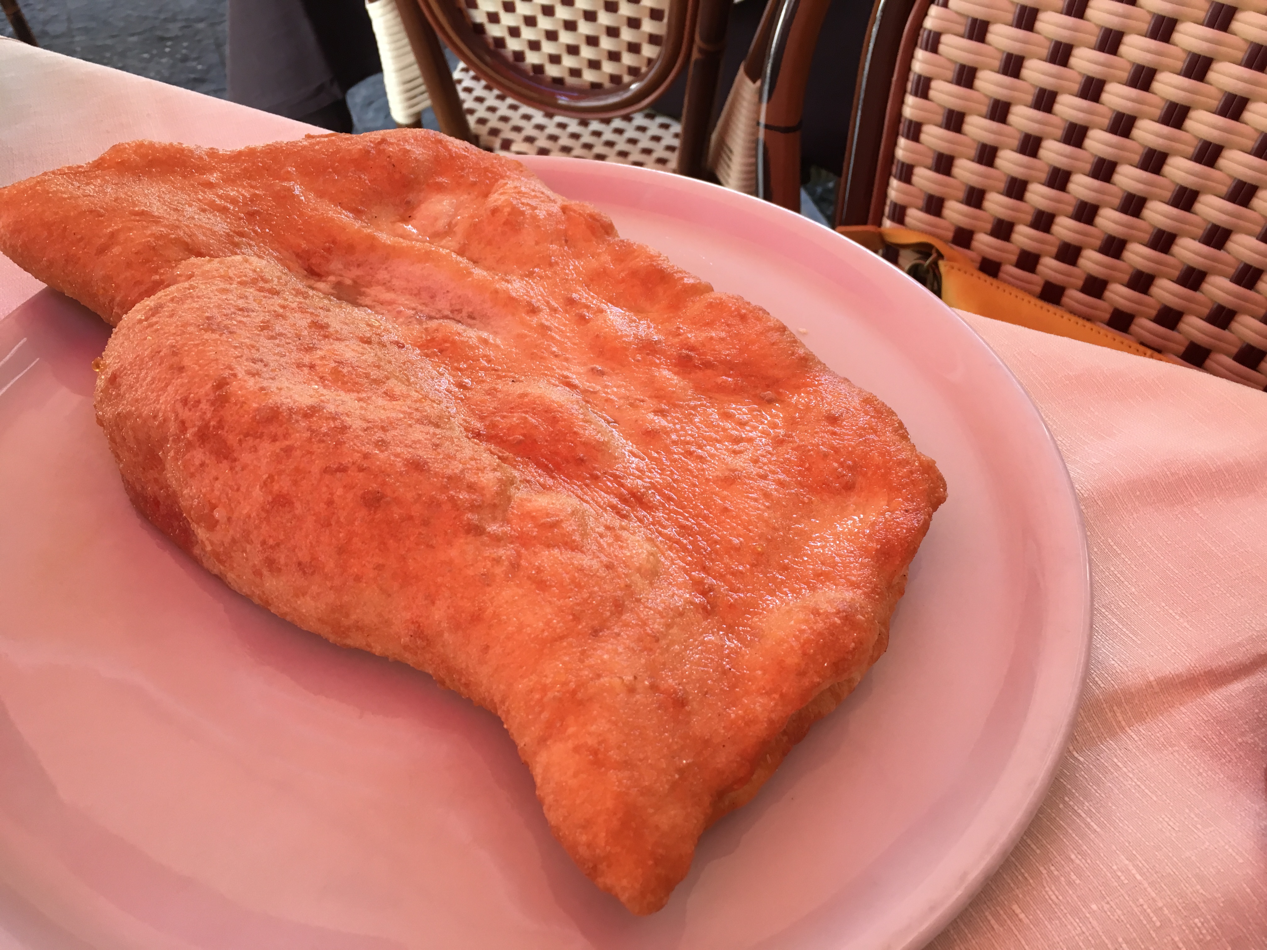 - Lunch at Attori & Spettatori– We had been walking and walking and walking and finally stumbled upon this restaurant, which had everything we were looking for: drinks, food, outdoor seating, quiet area. We opted to get a piazza fritta, which is a “fried pizza”, a staple Naples is known for. It’s basically a calzone that’s been fried and while it’s good, we preferred the traditional pizza. This restaurant was great, though!
