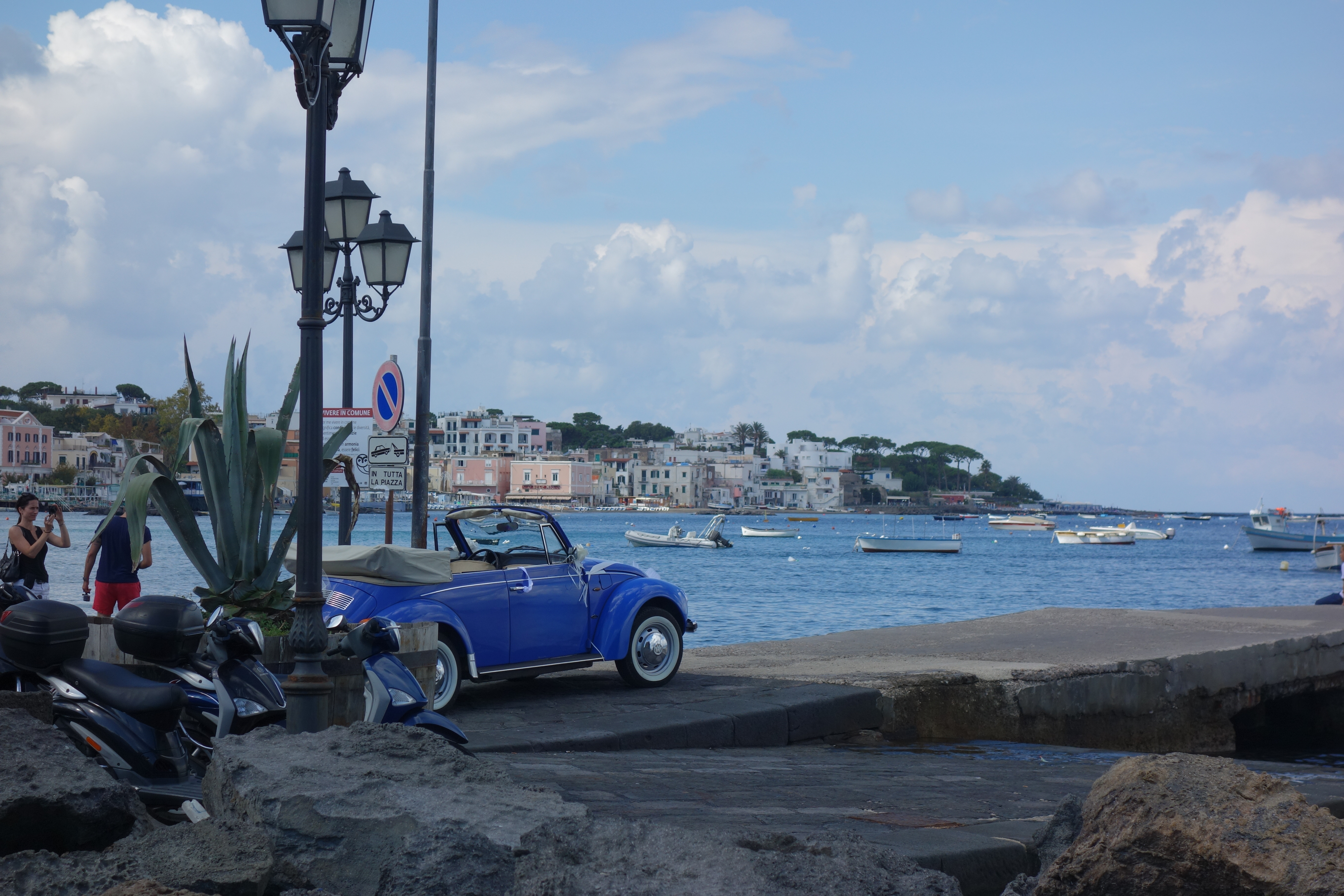 - Rent a car & tour the island- Through Ischia review, we rented the cutest (and smallest) smart car cabriolet. This was such a great idea because it allowed us to easily tour around the island. One day we headed out and made various stops along the way, including lunch in Forio, which is on the opposite side of the island and is better known for its beaches than Ischia Ponte. We didn’t think it would take that long to go all the way around the island but the road was SUPER windy and they climbed all the way up the island, which was pretty intense, so it took over an hour. The views were so beautiful, though, so it was worth it.