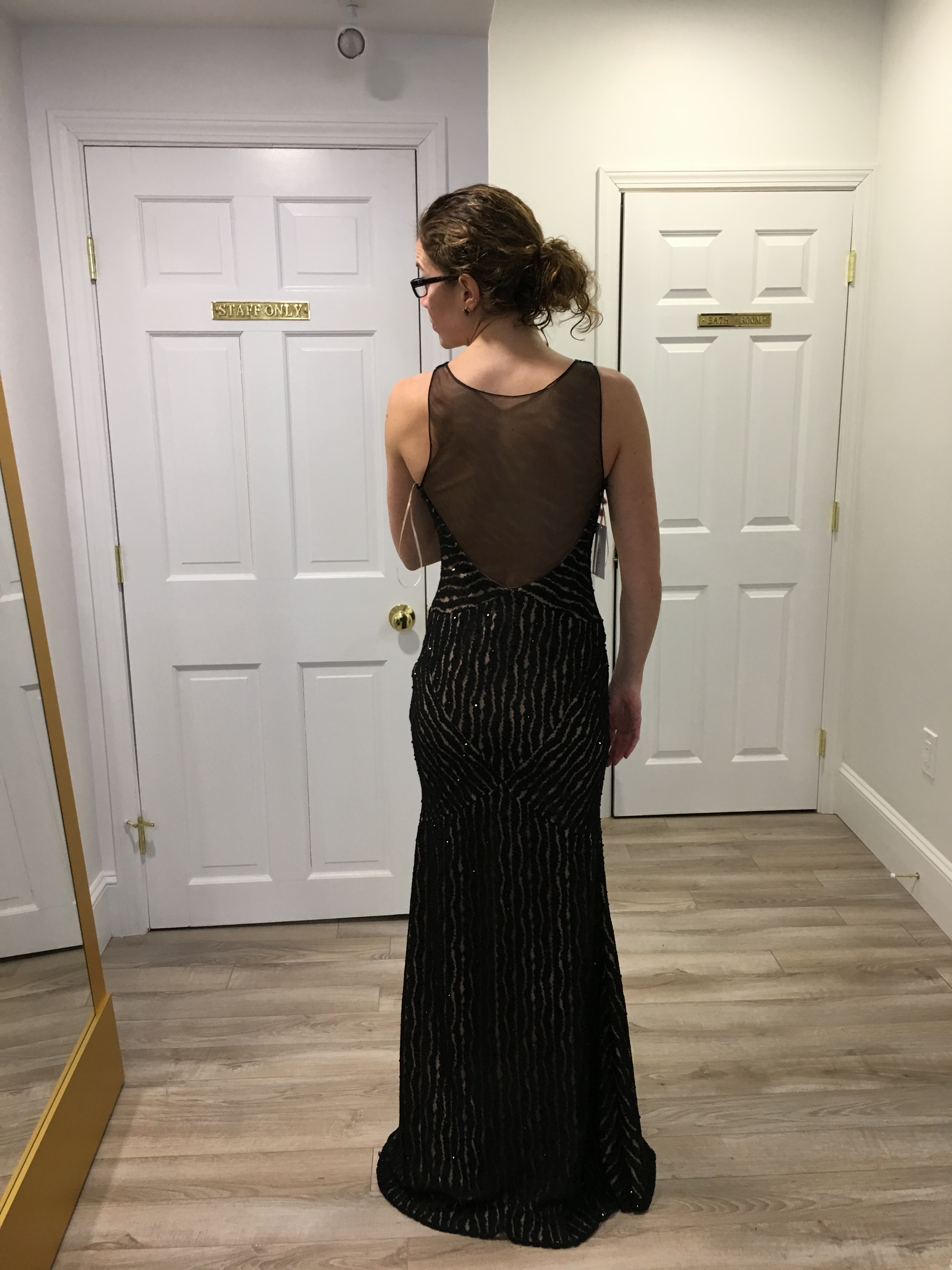 I ended up finding this amazing dress (first time rental, too!) that we all fell in love with. It fit like a glove and felt classy, yet a little fancy with the mesh back. Even though the wedding is in Florida, I feel like it’s still appropriate for the wedding since it is in December.