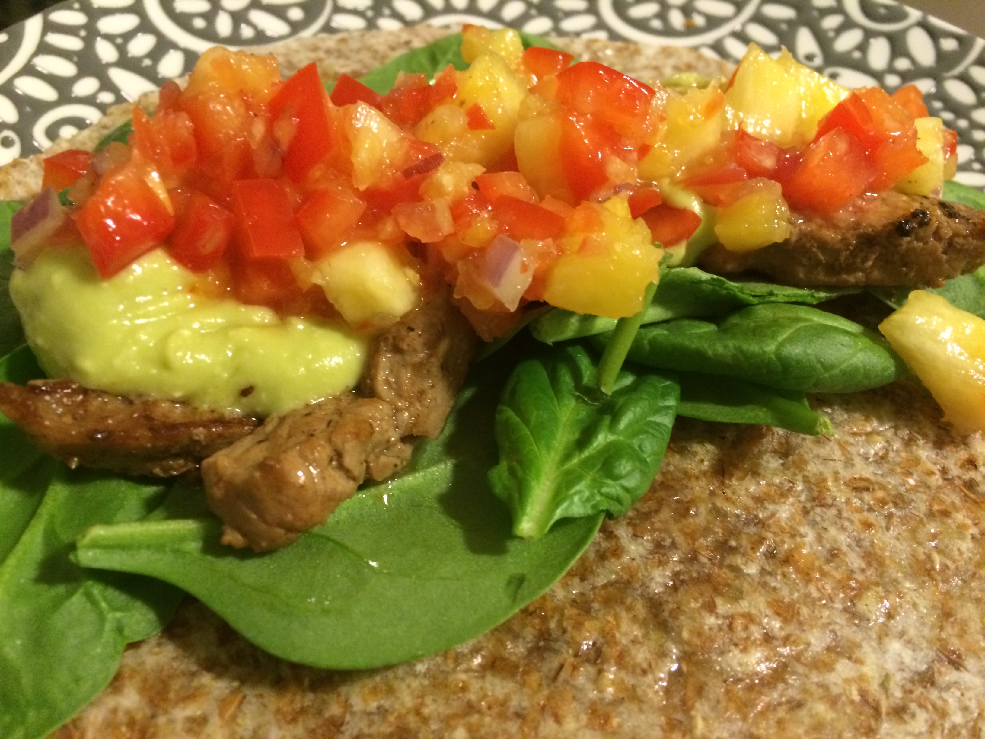 - For dinner, I was able to make the pulled chicken tacos that I couldn’t make on Saturday. I apparently forgot to take a picture, but they were fantastic!ย I sautรฉed some broccoli slaw and bok choy for the base, topped that with pulled chicken and homemade pineapple salsa and avocado. We had plenty of leftovers so I made us a quesadilla last night- just as good!